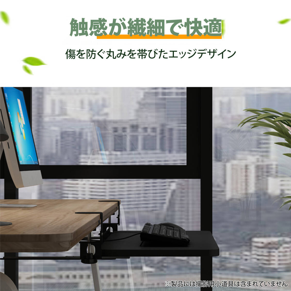 | この商品について | 【高品質素材・お手入れ簡単】:両面ラミネート加工で耐摩耗性・耐汚性に優れ、さらっとした手触り。水拭きでサッと汚れが落ち、いつでも清潔に使えます。 【穴あけ不要・簡単取り付け】:クランプ式で工具も穴あけも不要。机を傷つけずにしっかり固定でき、女性一人でもすぐに設置可能です。 【人間工学デザイン・快適作業】:腕の負担を軽減する高さ調整機能(0.5〜8cm)付き。長時間のパソコン作業でも疲れにくく、正しい姿勢をサポートします。 【省スペース・デスク下収納】:最大25cmまでスライド可能。使用後はすっきりデスク下へ収納でき、限られたスペースを有効活用。マウスも同時に置けて机上が広々。 【多用途シーンに対応】:オフィスワーク、在宅勤務、勉強机、デザイン作業など、さまざまなシーンで活躍。家庭からビジネスまで幅広く使える万能アイテム。 |