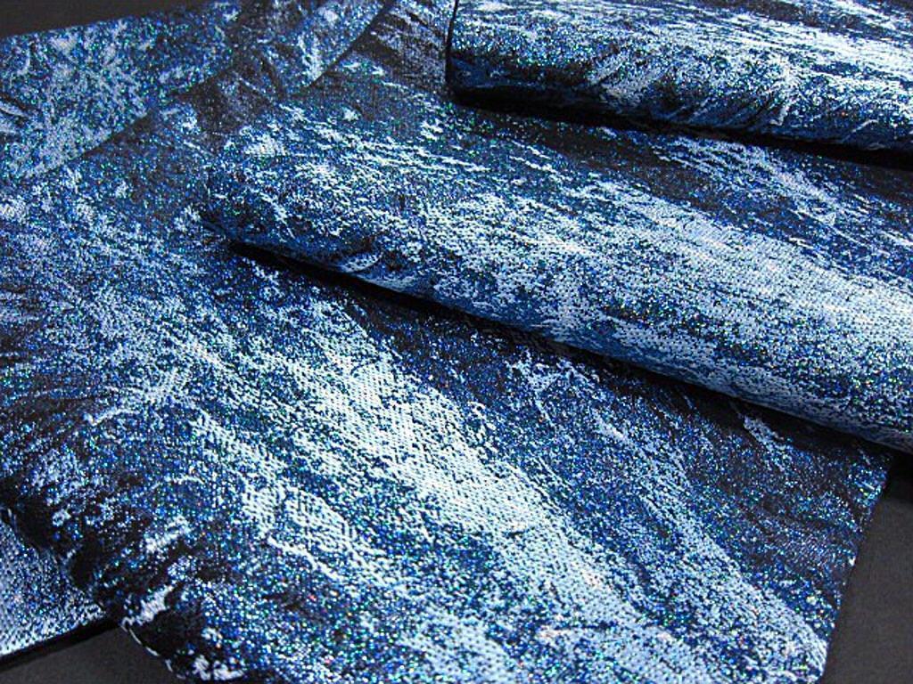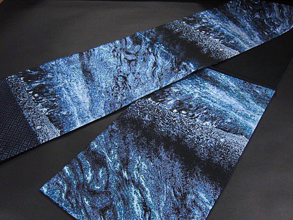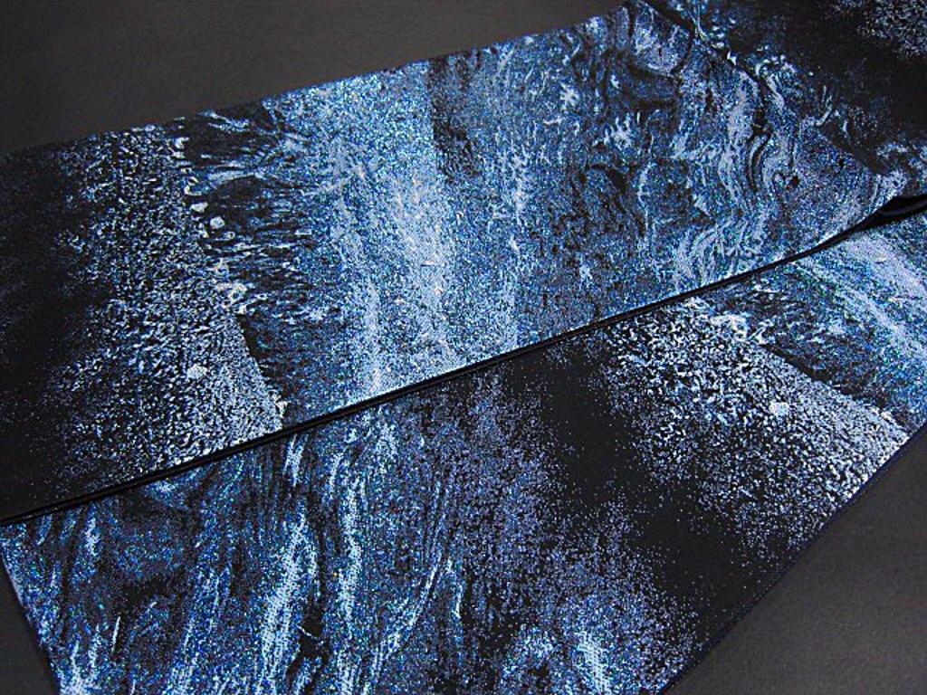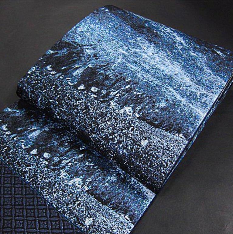 新品未仕立 西陣織六通柄袋帯です。イタリアの青の洞窟の世界を織り上げた、お品でございます。美しいグラデーションに織りあがっております。波やオーロラにも見えてご使用される方の解釈次第でコーディネートして頂ける非常に素敵な柄だと思います。大人女性の装いに相応しい一品。色留袖、訪問着、色無地、小紋、付下げと、お使いいただけるかと思います。お出かけ・パーティー・観劇・式典などにいかがでしょうか