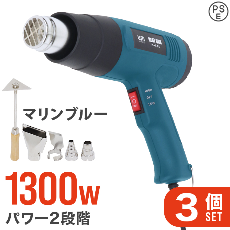 【3個セット】超強力 ヒートガン 省エネ 1300W PSE認証 ホットガン 2段階 強弱調節 アタッチメント付 塗装乾燥 ステッカー剥離 安全 人気