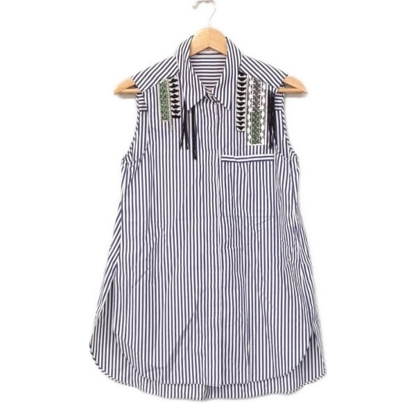 デザイン:レギュラーカラー/ノースリーブ/ミニ/ストライプ/ビーズ/タッセル/シャツワンピ