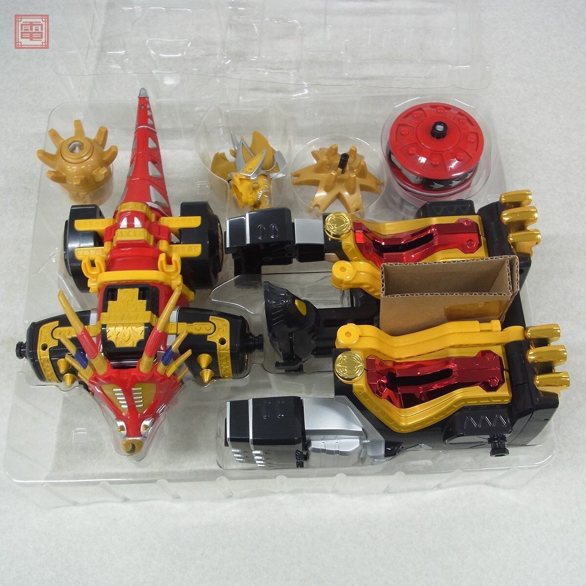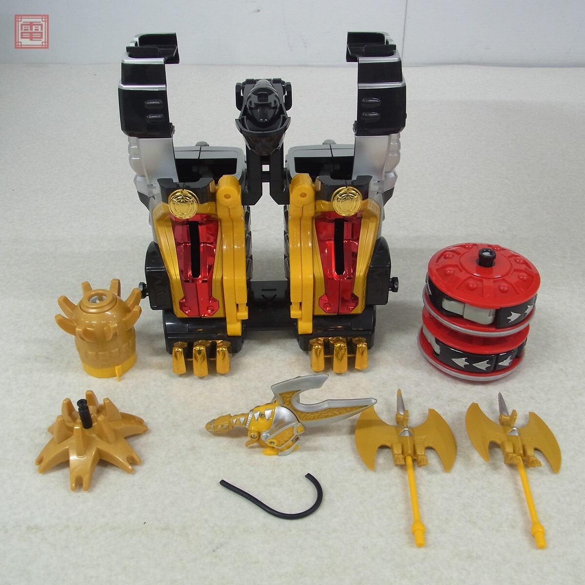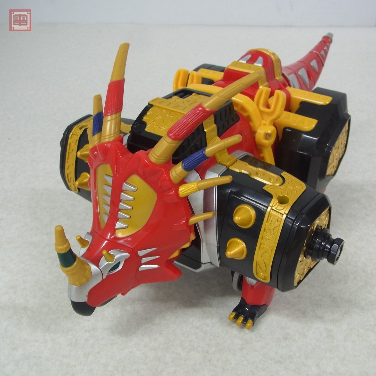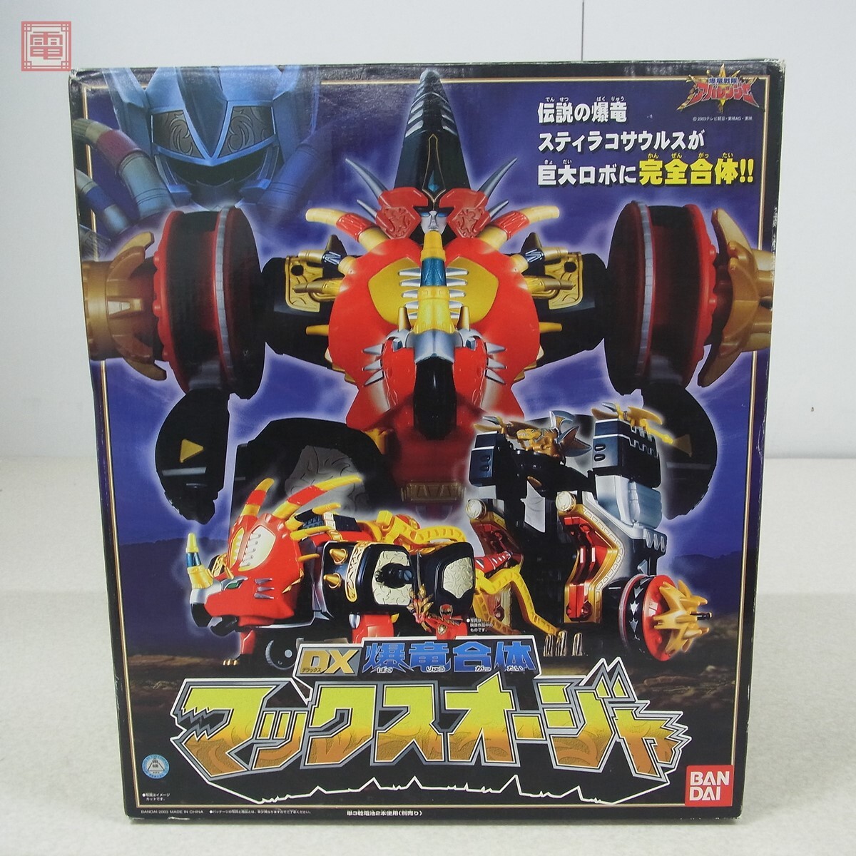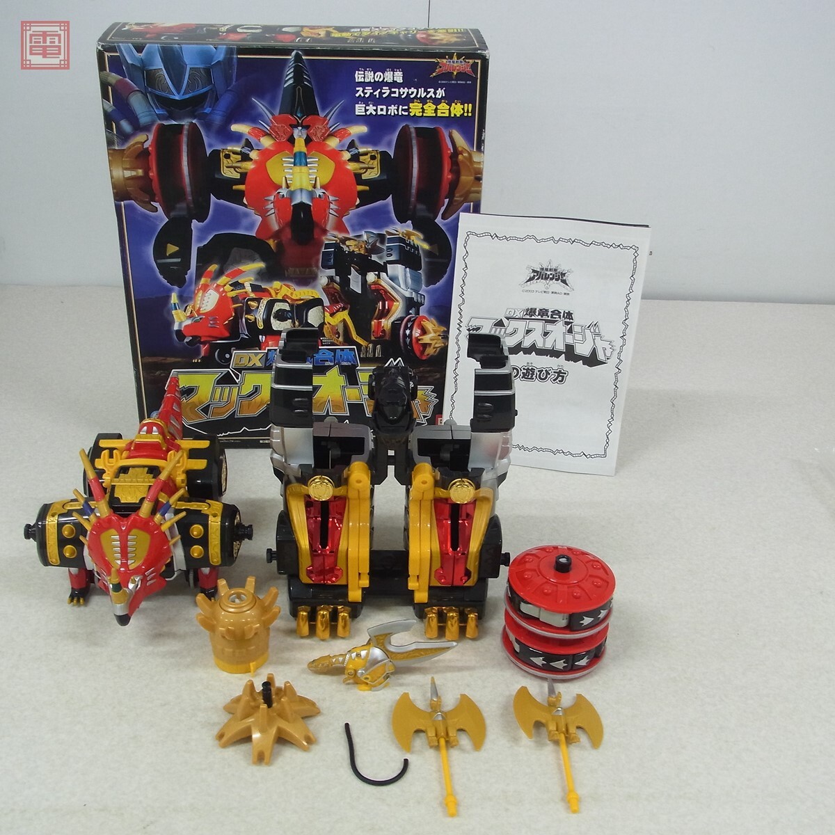 現状品 バンダイ 爆竜戦隊アバレンジャー DX爆竜合体 マックスオージャー 通電確認済 ■こちらの商品はパーツ一部劣化による破損があるため【現状品】として出品しております。 ■上記よりどの様な不具合が生じましても当店では交換・返金・返品等の対応はできません。 ■ご理解ご納得いただける方のみご入札をお願いいたします。 ■簡易動作の確認をしました。 ■外箱にスレ、キズがあります。 ■本体にスレ、キズ、劣化によるパーツ破損があります。 ■電池ボックスに液漏れ跡、緑青があります。 ■破損の恐れがあるため、変形・合体等のギミックは確認していません。 ■写真のものが全てです。付属物の有無や状態については写真からご判断ください。 ■付属物については細かいチェックはしておりませんので、万が一、欠品があったり余計な物が入っていたとしてもご了承ください。 ■商品到着後、当店の保証期間中は、商品及び箱や取説、付属品などを1つでも廃棄や破損をしないようにお願い致します。廃棄や破損をした場合、商品に問題があった場合でも対応や返金などの対処ができなくなります。 ■商品によりますが、発売されてから10年以上経過している中古品である事をご理解頂いた上でご入札をお願い致します。なお、新品や美品、また特記事項がある場合は別途明記します。 | |||