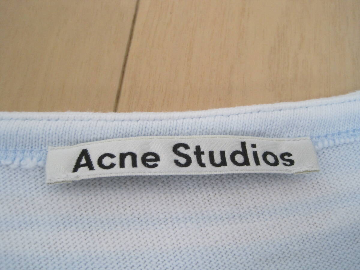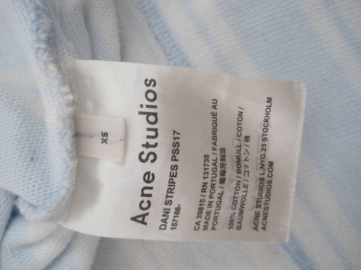 Acne Studios アクネ ボーダー半袖カットソーになります。着用感がありますが、特に目立つキズ、汚れはありません。生地は厚手です。カラーは水色×白、サイズはXSですが大きめです、実寸でご確認下さい、綿100%、ポルトガル製です。肩幅46cm、袖丈29cm、身幅48cm、着丈66cmです。素人の採寸ですので若干の誤差、商品状態はご了承ください。 落札後は、ノークレーム、ノーリターン、ノーキャンセルでお願いします。発送方法はレターパックです。ほかにも色々出品していますので良かったらご覧ください。
