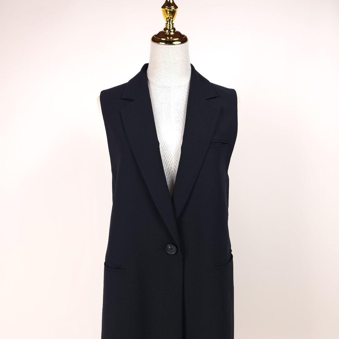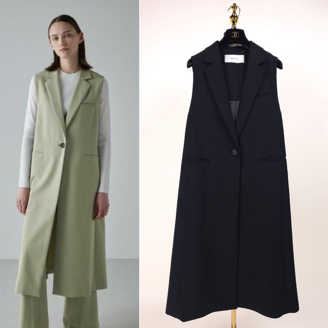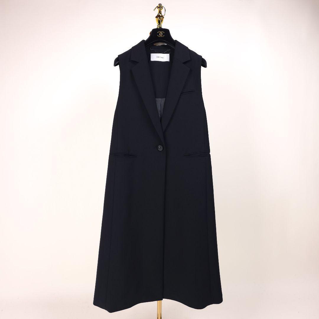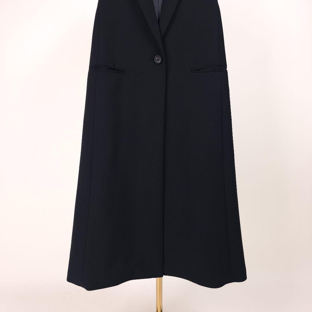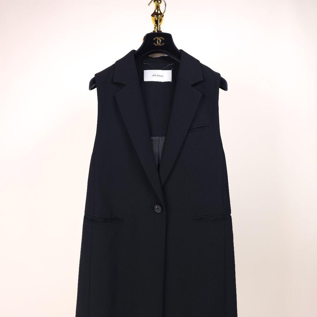 【新品同様】アドーア バックサテンクレープロング ジレ コート ブラック 2023 ADORE テーラードカラー ベスト ブラック 黒