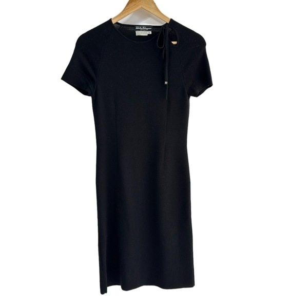 サルバトーレフェラガモ FERRAGAMO/SalvatoreFerragamo サイズS - 黒 レディース クルーネック/半袖/ロング 美品 ワンピース
