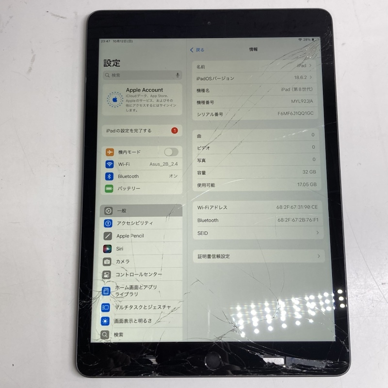 "商品に興味を持っていただき、ありがとうございます。 以下お読みいただき、入札をお待ちしています。 【付属品】 写真に写っているものが全てとなります。 【動作確認】 Wi-Fiへの接続、Siriに話しかけての反応、音量の大小操作、TouchID(指紋登録)反応、カメラの起動、初期化の操作まで確認済みです。 【商品状態】 画面が割れています。 状態については写真にてご確認をお願い致します。 アクティベーションロックは解除されております。 | |