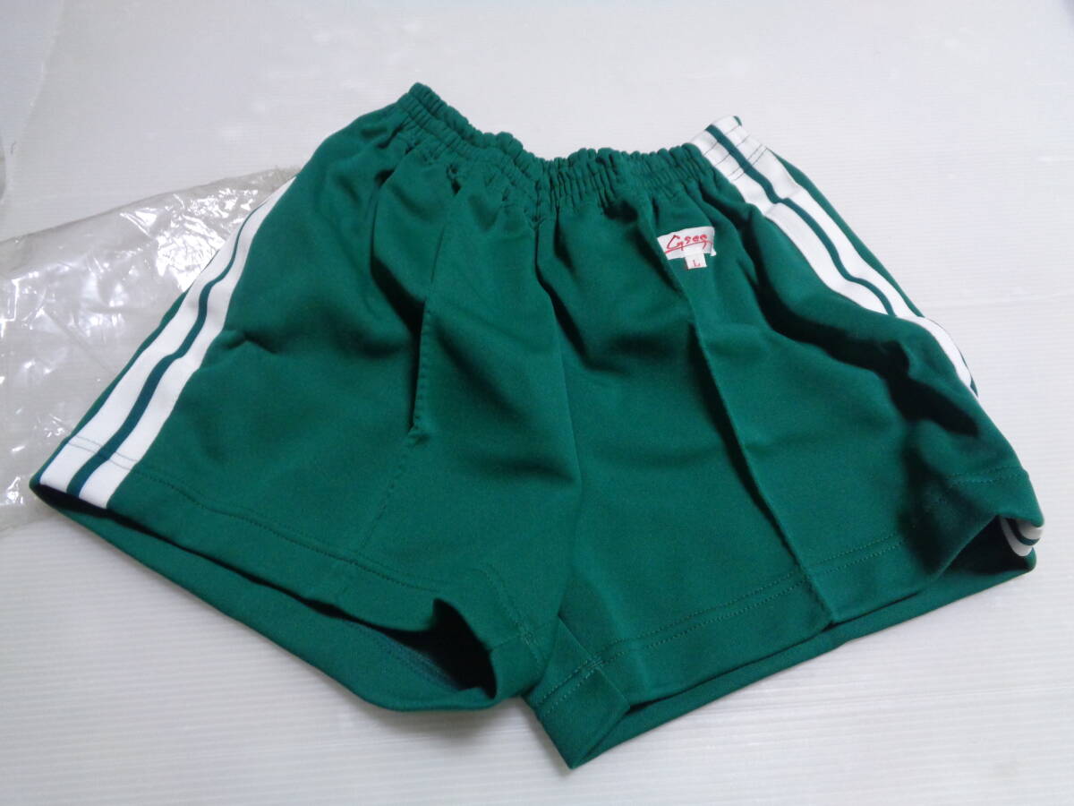 L  緑×白 ジーses  短パン ショートパンツ 体操着 体操服 昭和レトロ 未使用