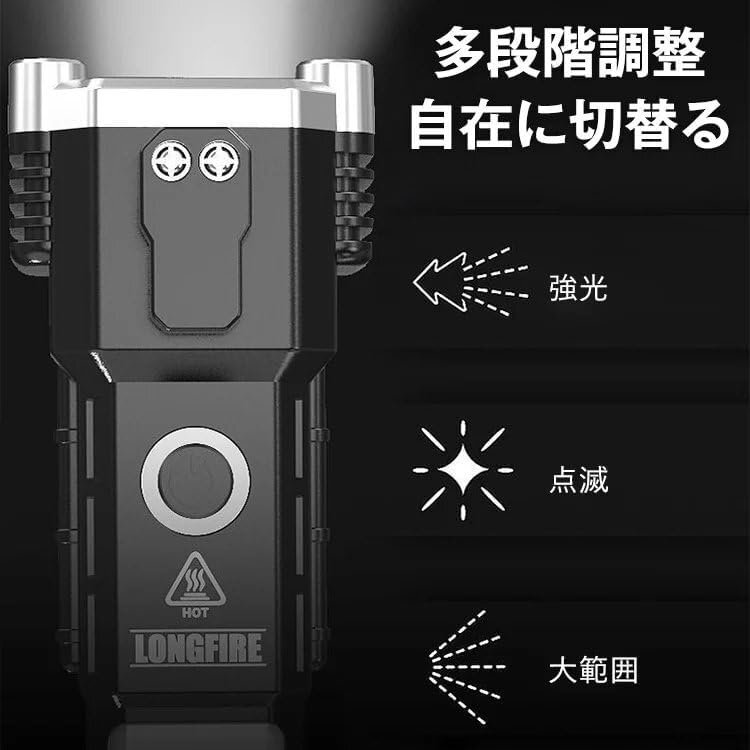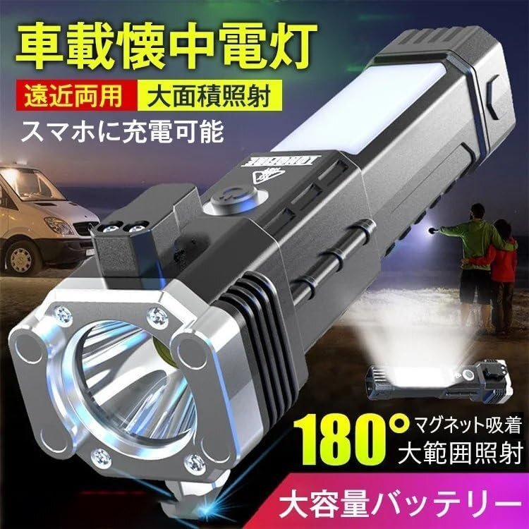多機能 高輝度懐中電灯 安全ハンマー 強力ライト 防水 USB充電 Led 強力 軍用 防災対策 緊急脱出 アウトドア ハイキング キャンプ用 413