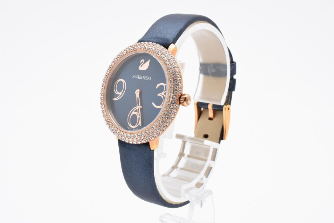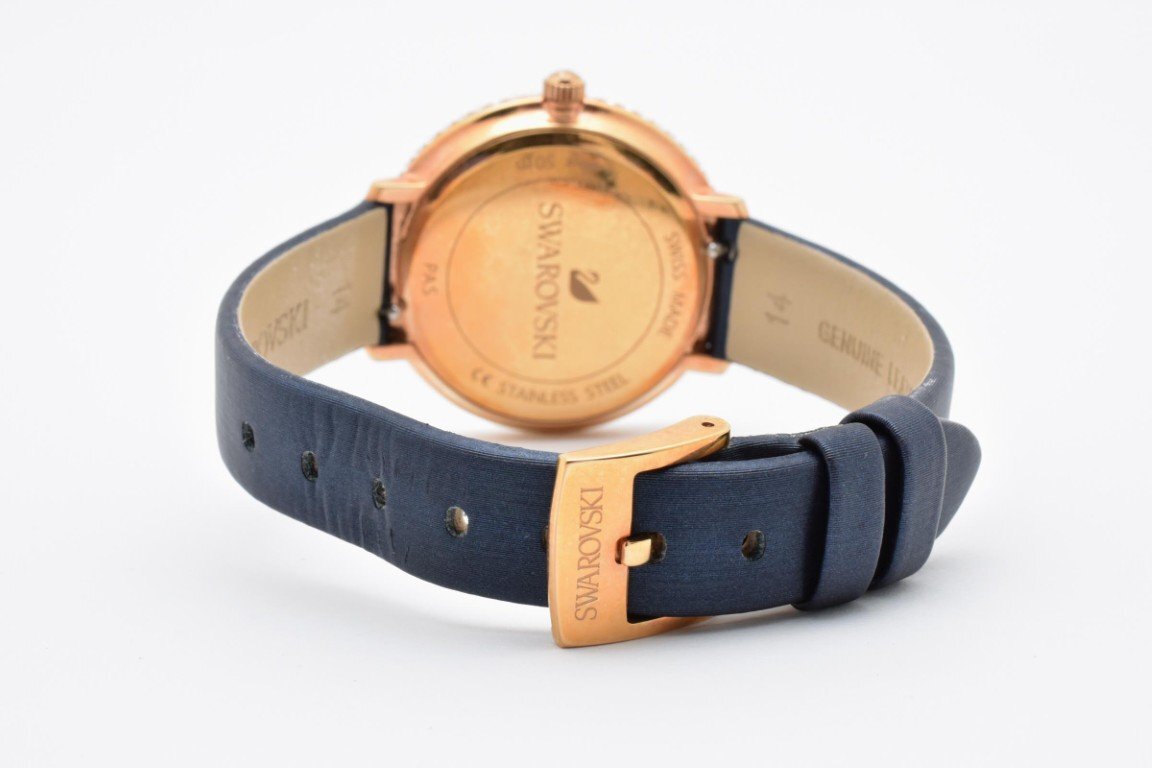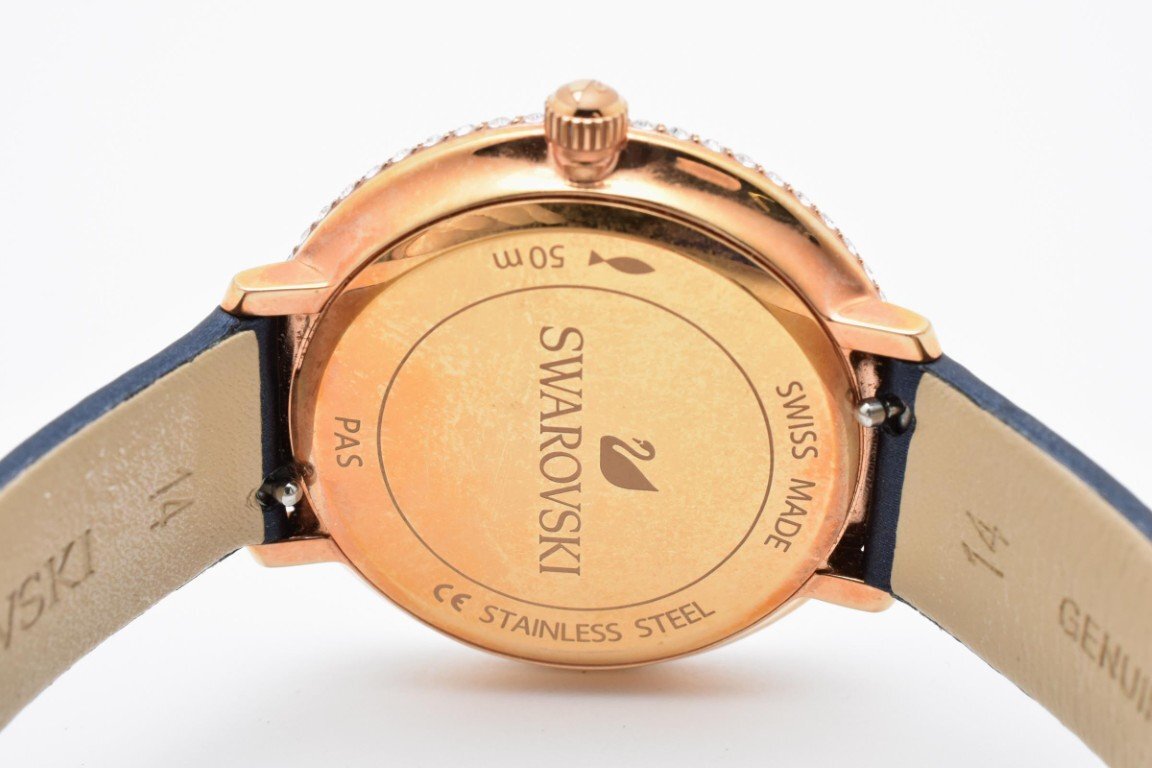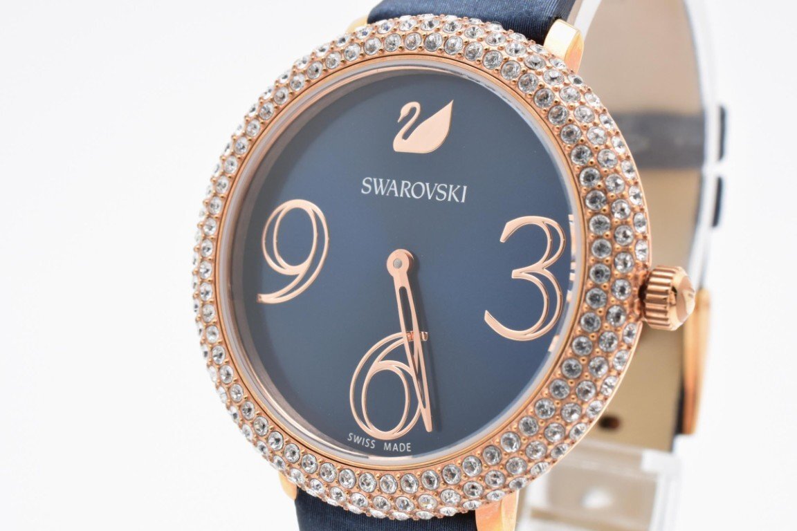 SWAROVSKI スワロフスキー ゴールド ラウンド 青文字盤 レザーベルト クリスタルウォッチ 2針 レディース クォーツ 腕時計