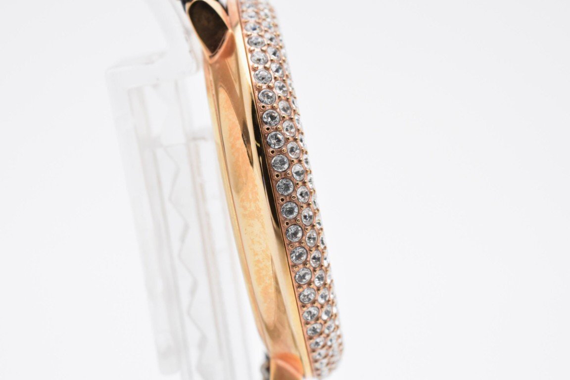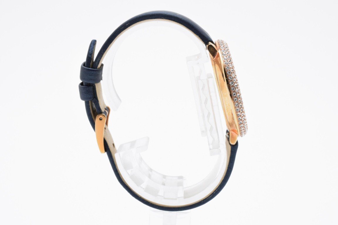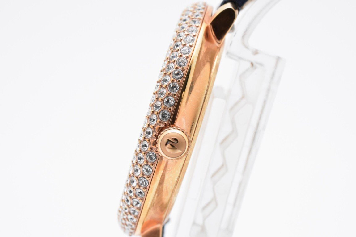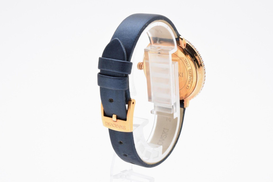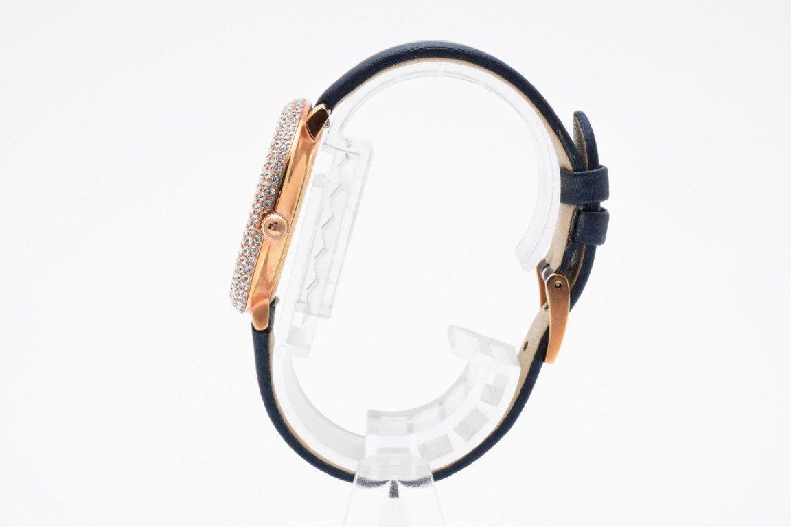 SWAROVSKI スワロフスキー ゴールド ラウンド 青文字盤 レザーベルト クリスタルウォッチ 2針 レディース クォーツ 腕時計