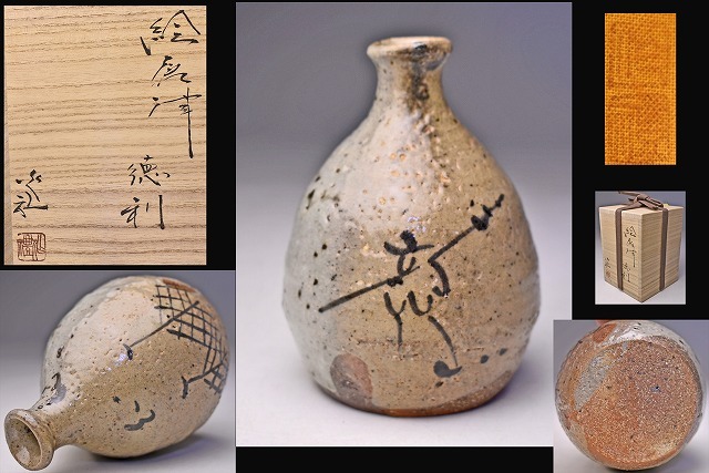 岡本作礼 ★ 絵唐津 徳利 ★ 共箱 共布 ★ 上作 ★ 古唐津に見られる絵柄で古格を感じさせる逸品 ★ 酒器 ★