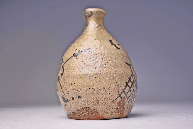 岡本作礼 ★ 絵唐津 徳利 ★ 共箱 共布 ★ 上作 ★ 古唐津に見られる絵柄で古格を感じさせる逸品 ★ 酒器 ★