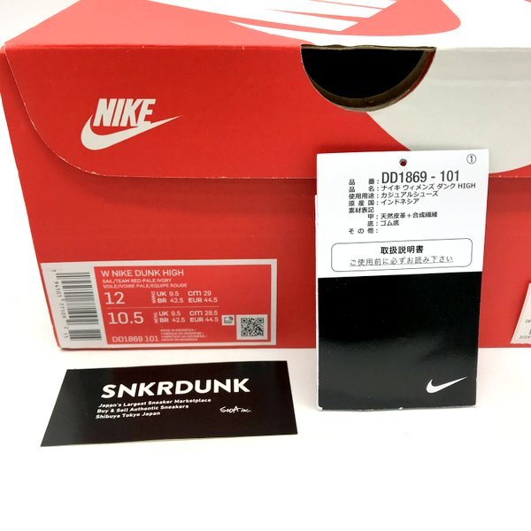 NIKE WMNS DUNK HIGH TEAM RED ウィメンズ ダンク ハイ チームレッド スニーカー ランク:B 通常の着用に伴う使用感と多数の汚れが見受けられる商品です。 管理番号:B2442 (問い合わせの際はこちらの管理番号をお伝えください) ※写真にないものは付属しておりません。 カラー:レッド系 シリーズ名:DUNK HIGH ブランド名:NIKE メーカー型番:DD1869-101 靴のサイズ(JP):29.0cm 原産国/製造国:インドネシア カット:ハイカット 靴のアウトソール素材:ラバー 素材(生地・毛糸):合成繊維 靴のサイズ(USA):12 靴のサイズ(EUR):42.5 靴のサイズ(UK):9.5 付属品:箱 タグ ブランド名(カナ):ナイキ A color: Red system A series name: DUNK HIGH A brand name: NIKE Manufacturer model number: DD1869-101 Shoe size (JP): 29.0cm Country of origin/manufacturing: Indonesia A cut: High cut Out sole material of shoes: Rubber Material (fabric/yarn): Synthetic fiber Shoe size (USA): 12 Shoe size (EUR): 42.5 Shoe Size (UK): 9.5 Accessories: Box tag |