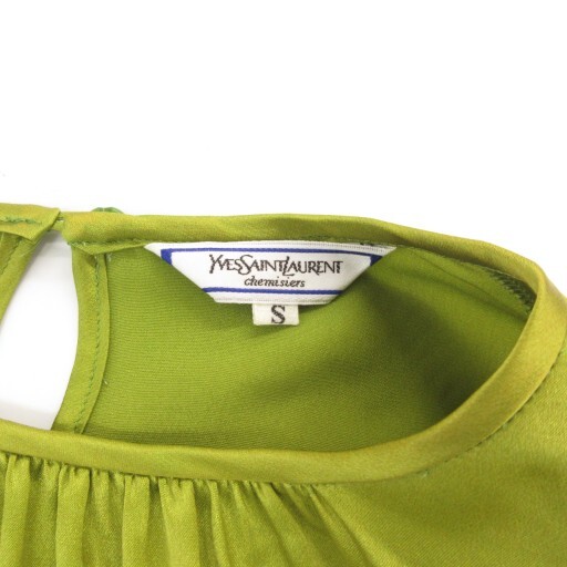 イヴサンローラン YVES SAINT LAURENT ヴィンテージ ブラウス 長袖 絹 シルク 7A3 緑 グリーン /GV ■GY11 レディース