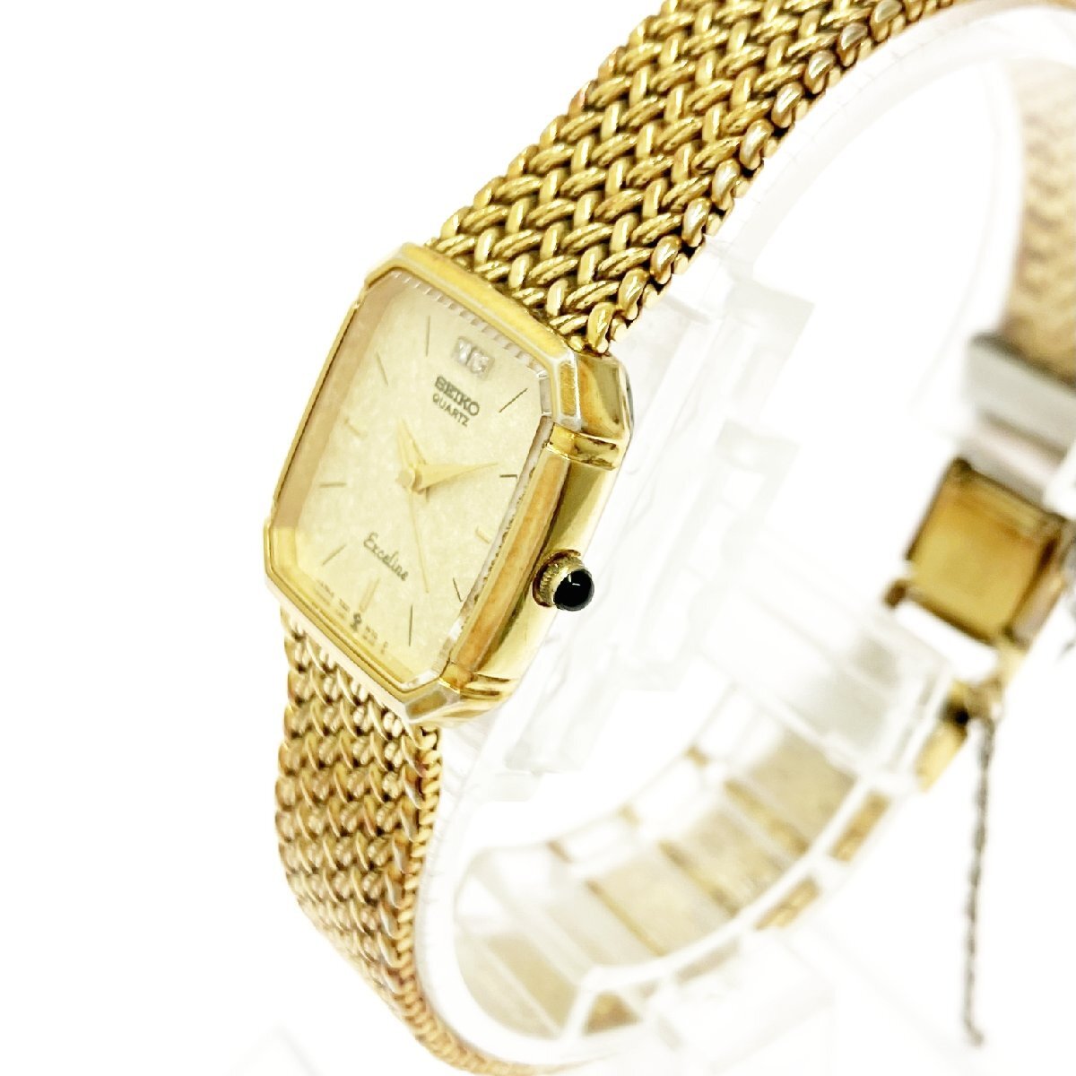 【1円スタート】SEIKO セイコー 7321-5910 エクセリーヌ GP×SS ゴールド文字盤 クオーツ レディース腕時計 499362