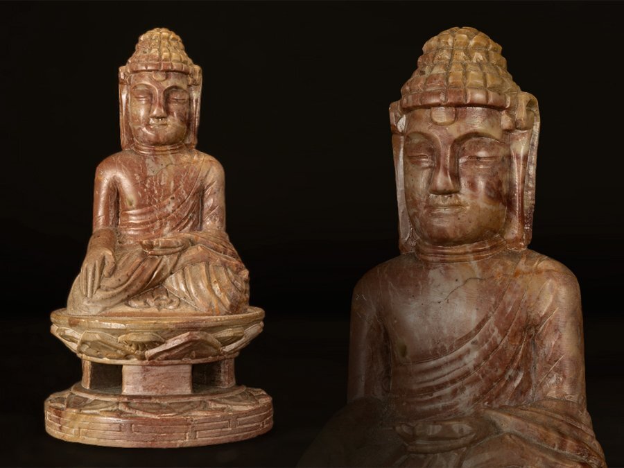 ●中国 石彫 如来 仏像 赤 仏教美術●