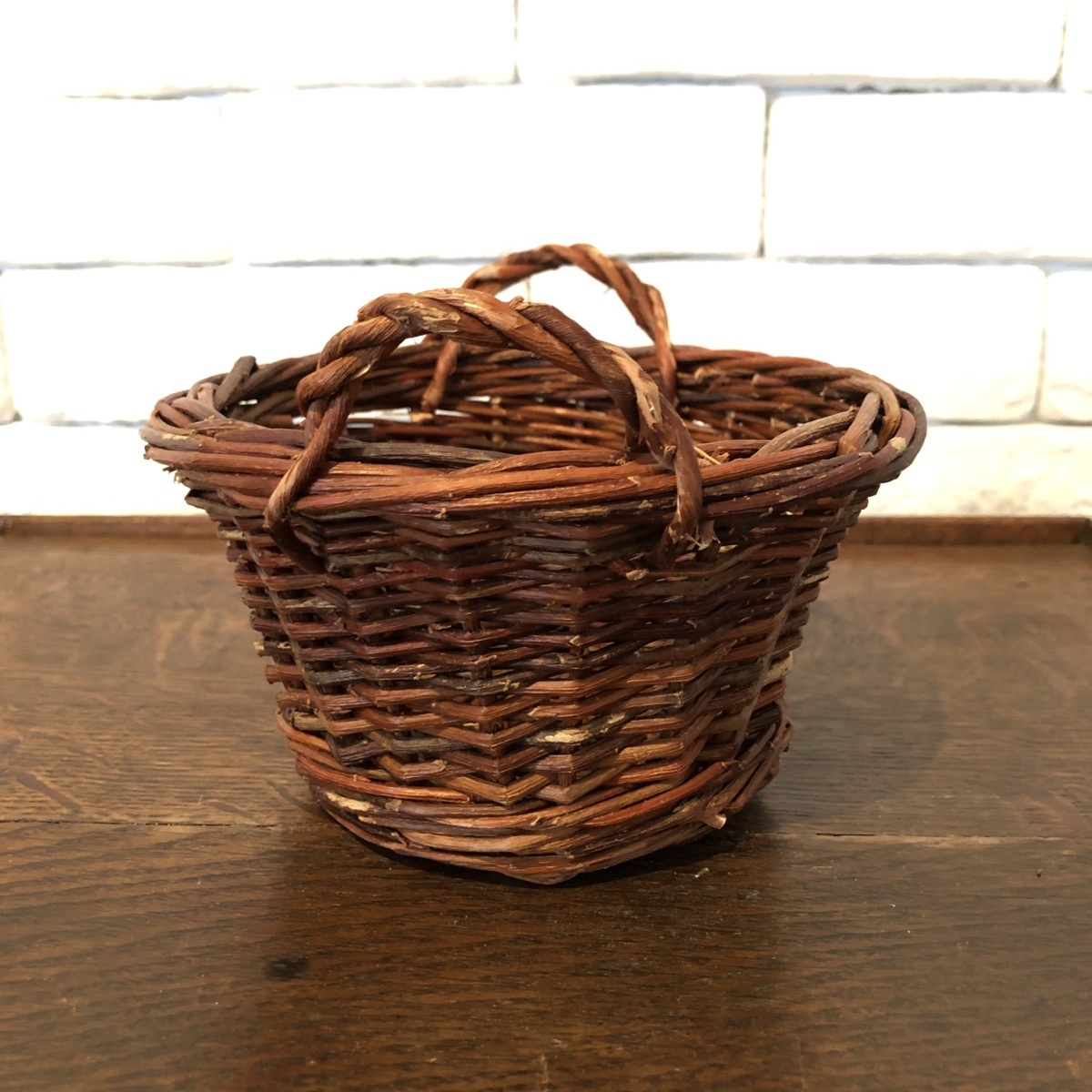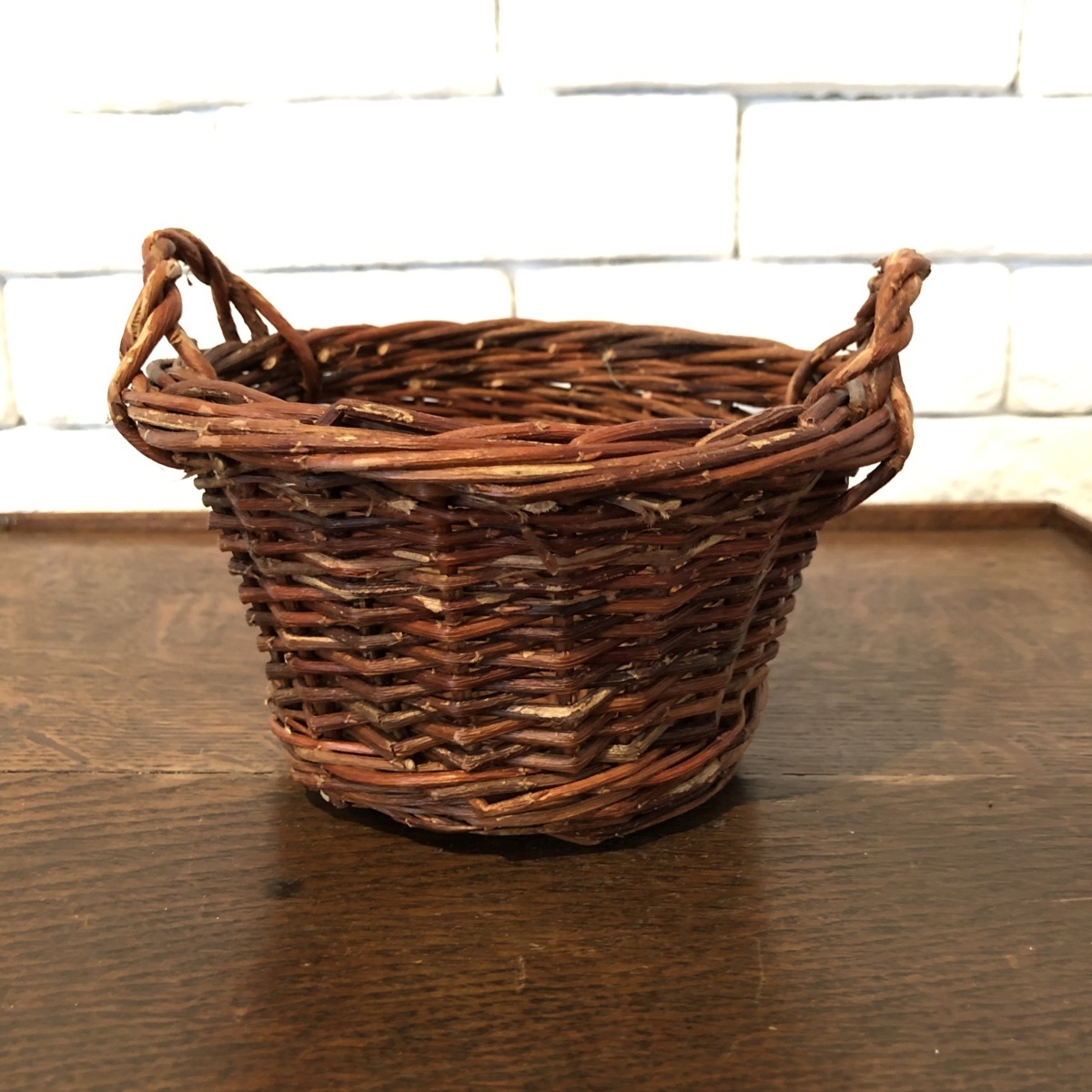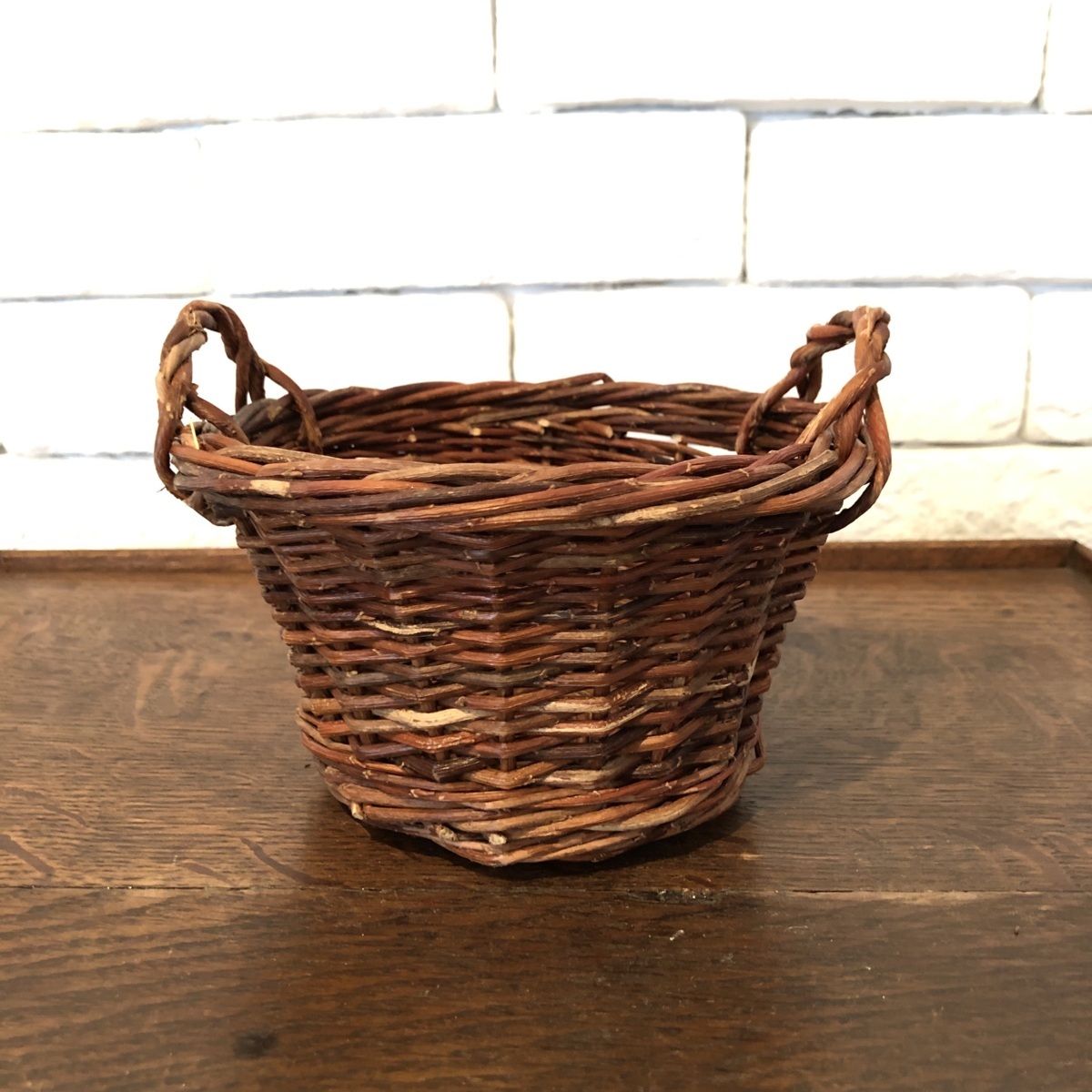 ブラウンカラー、持ち手付き、目の詰まったシッカリとした作りの商品です。