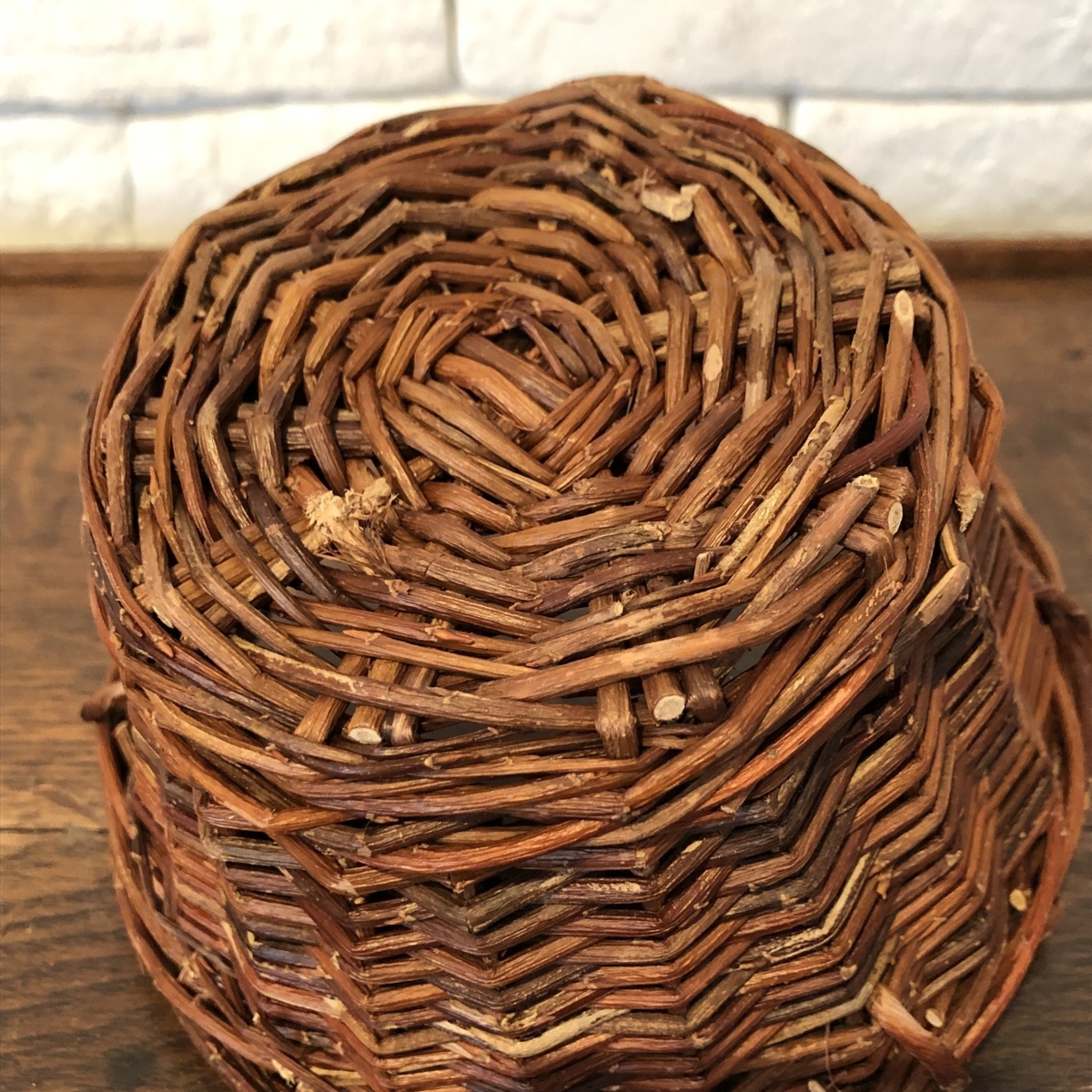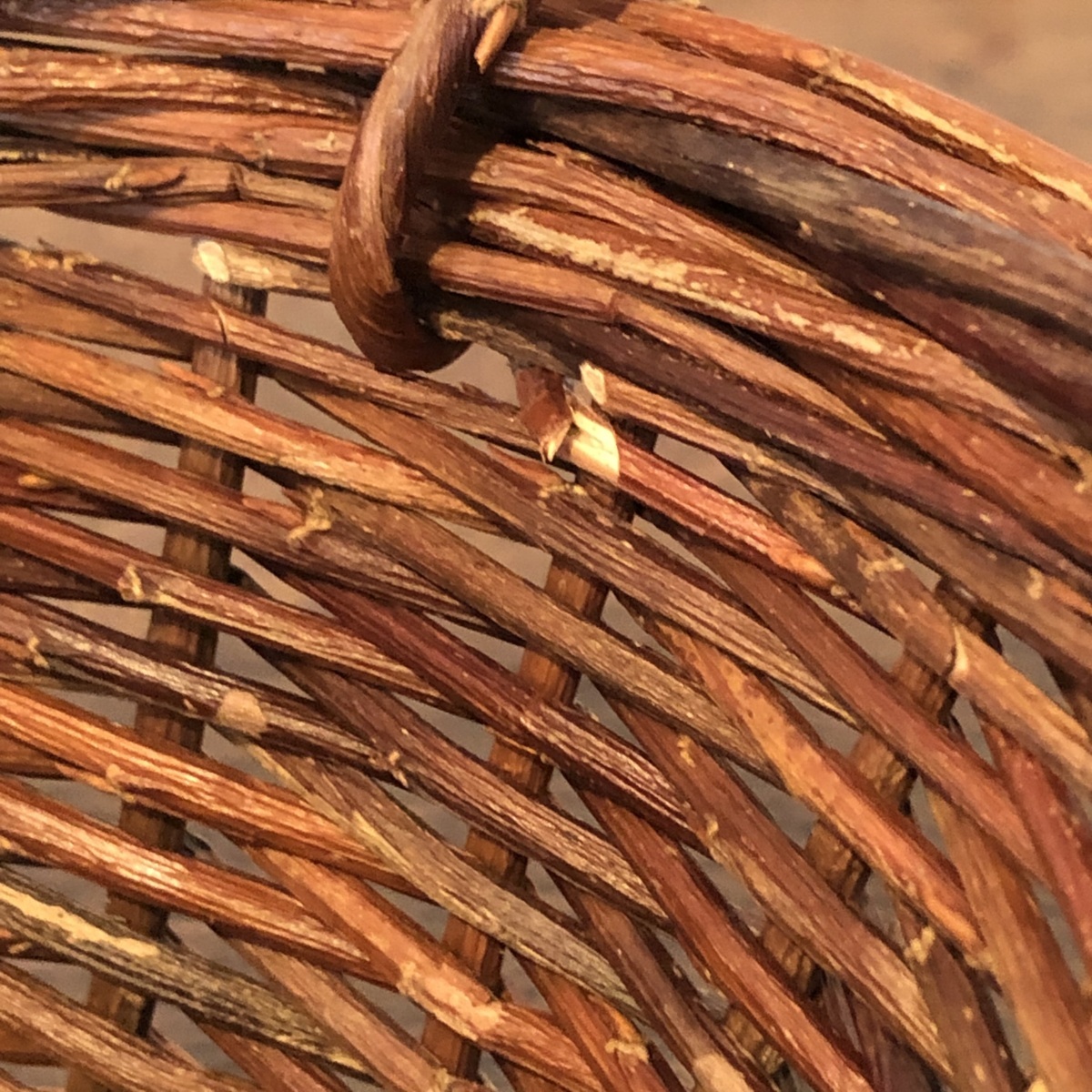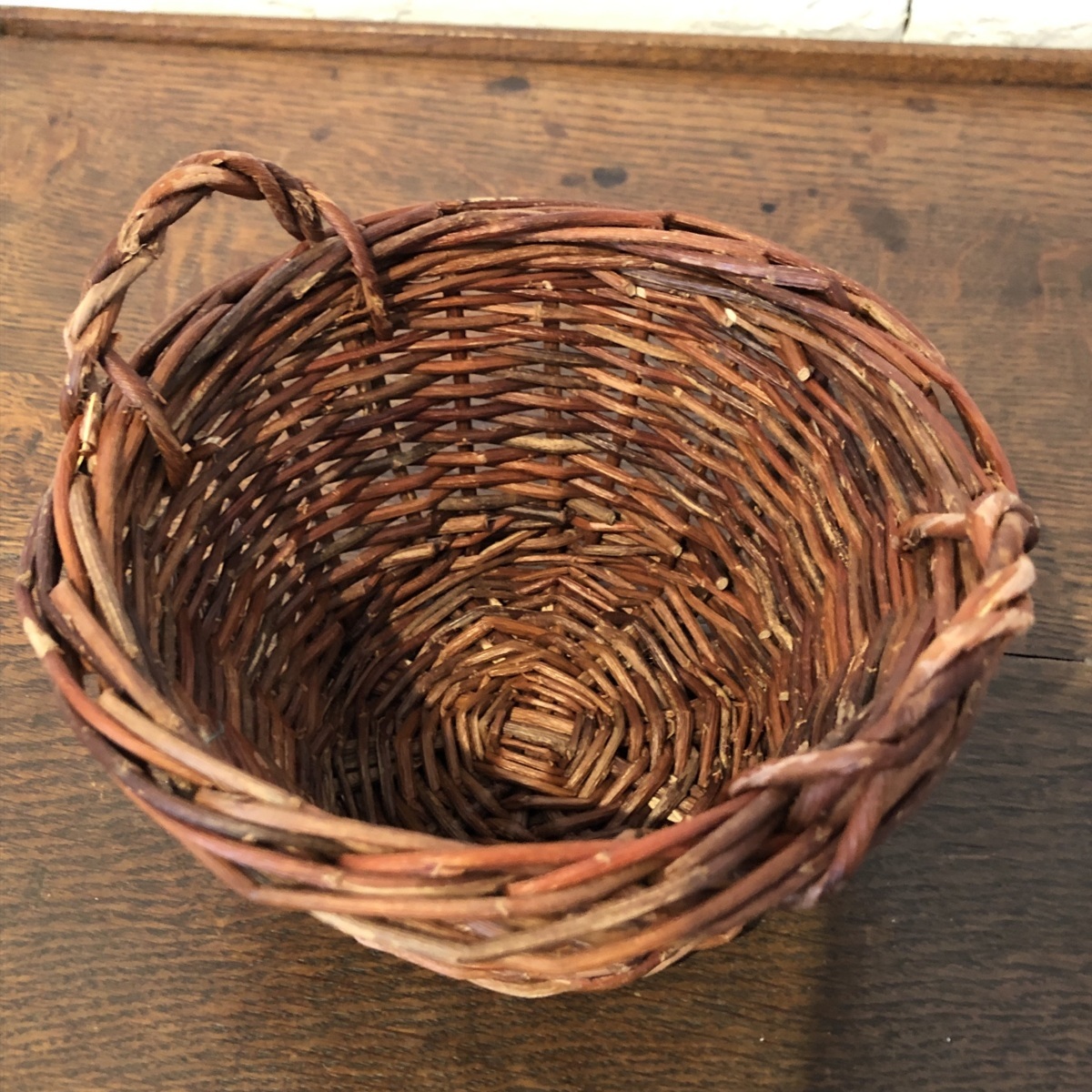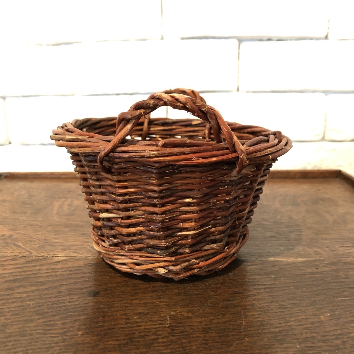 ブラウンカラー、持ち手付き、目の詰まったシッカリとした作りの商品です。