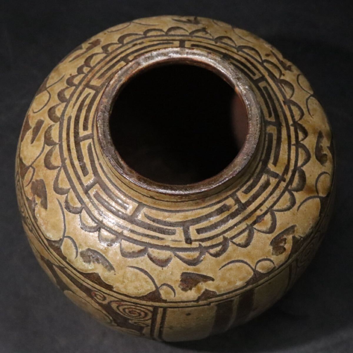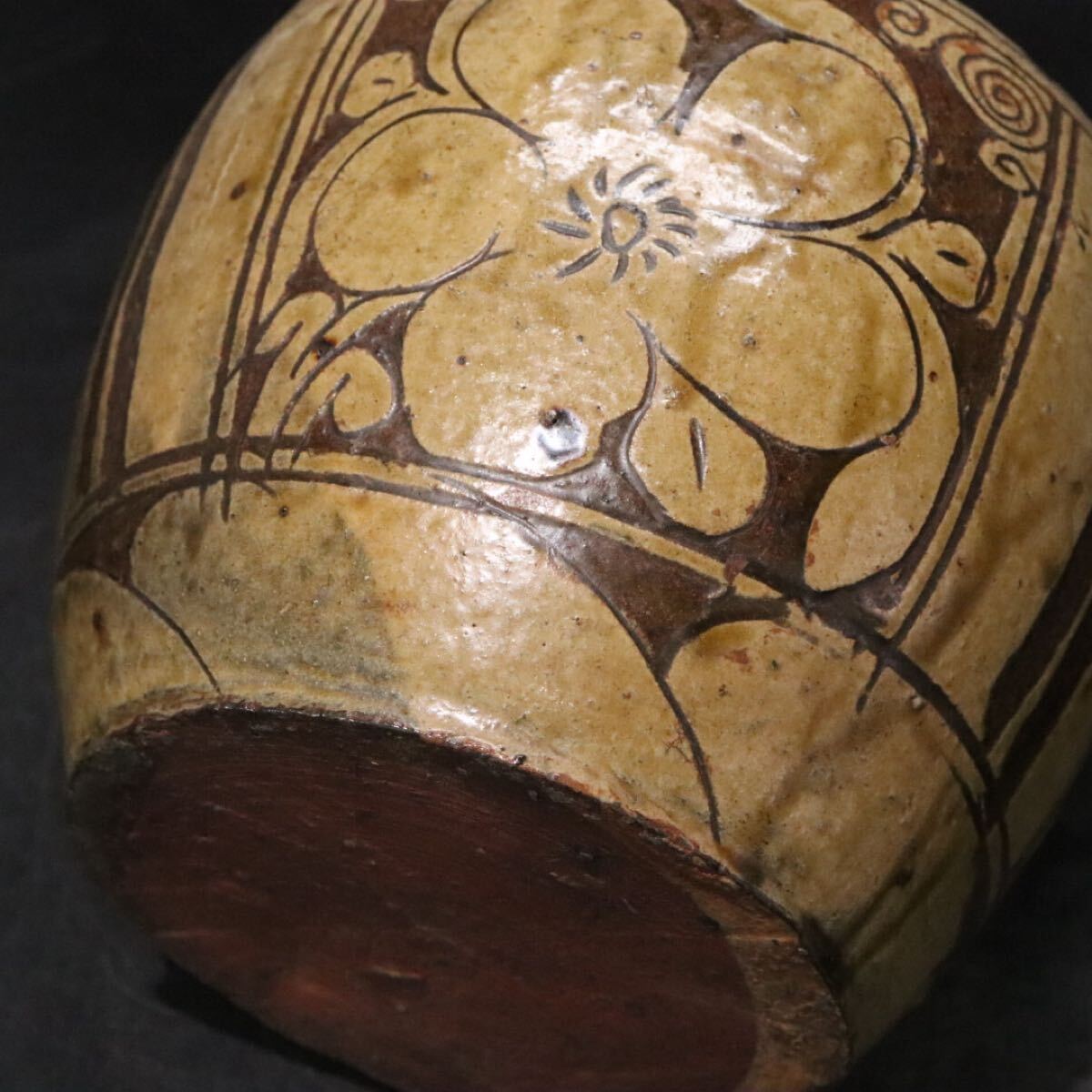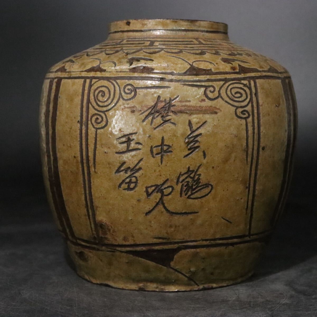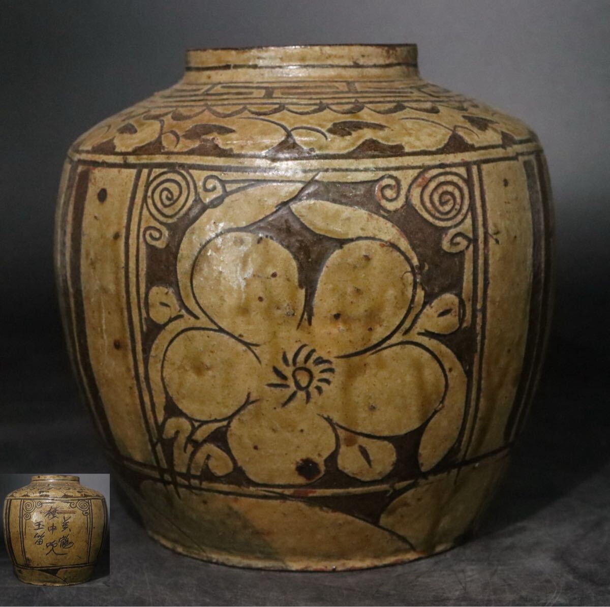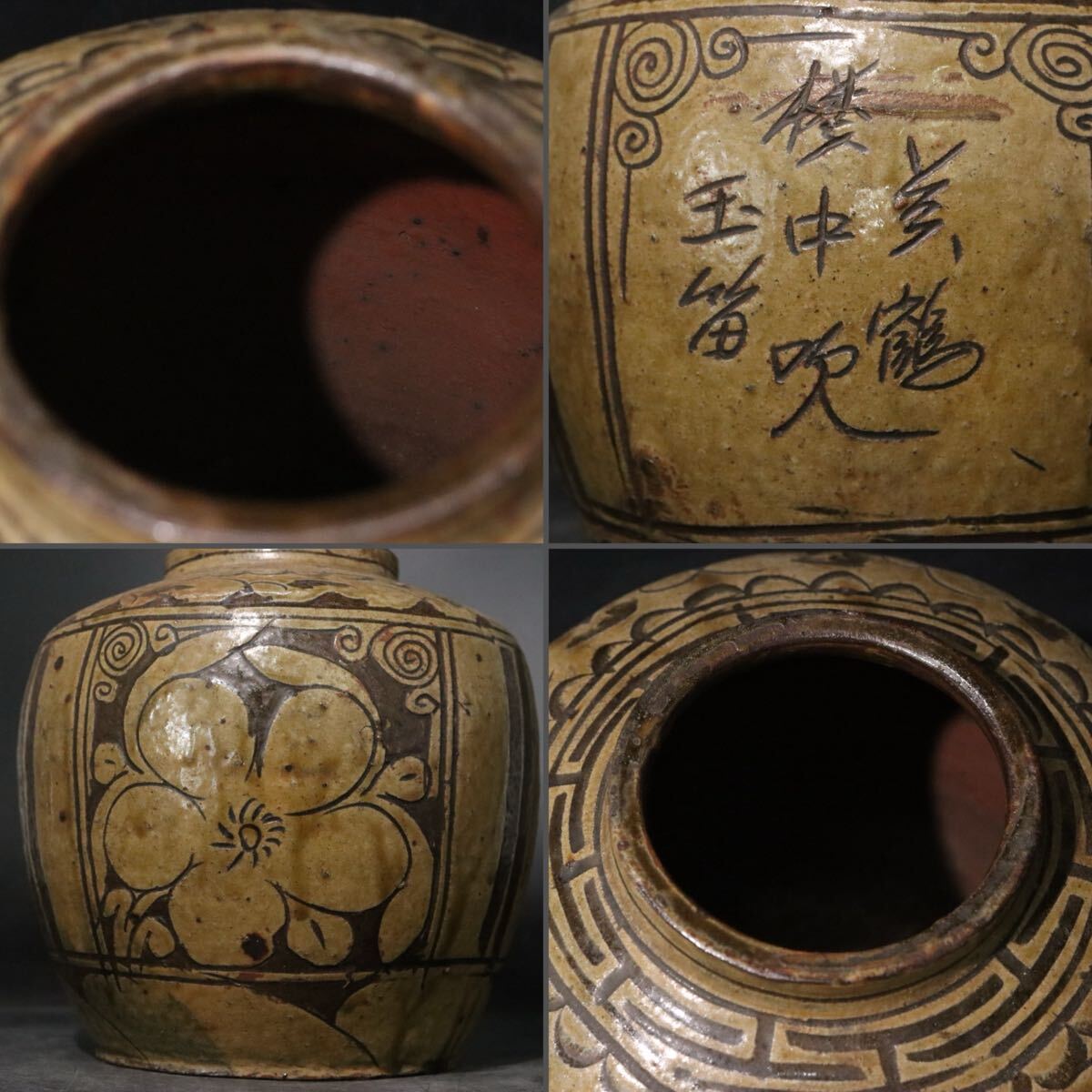 | 時代 銹釉花文 ・ 漢文 陰刻 き落とし 花瓶 磁州窯系 / 中国美術 壺 煎茶道具 .B1232 |