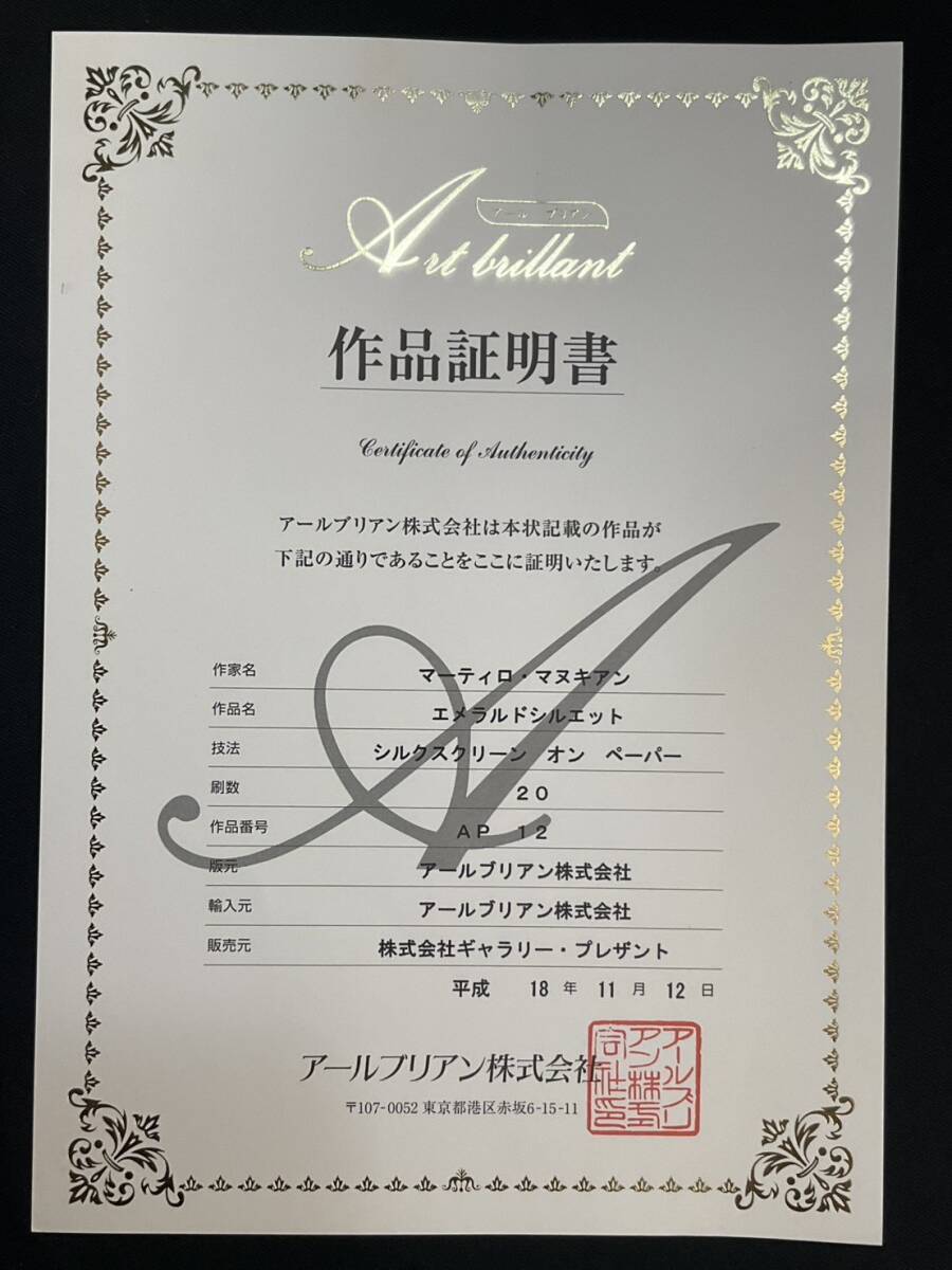 真作■シルクスクリーン■マーティロ・マヌキアン■『エメラルドシルエット 』■世界的人気作家■額付絵画