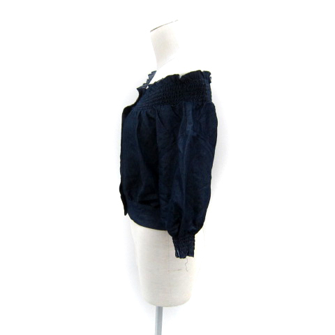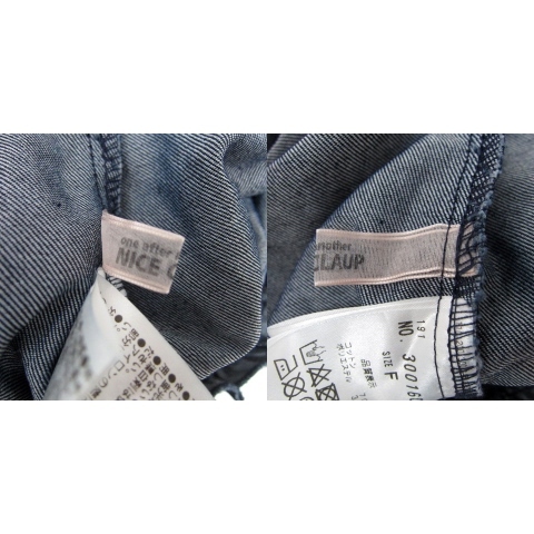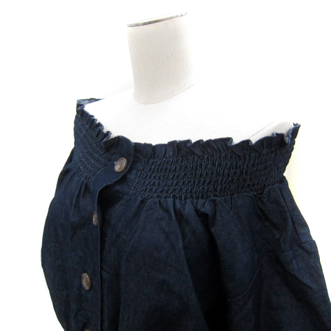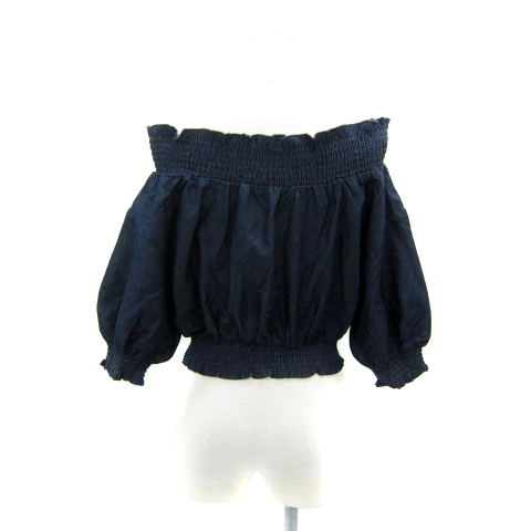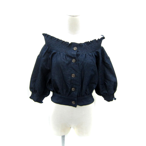 ワンアフター アナザー ナイスクラップ ダンガリーシャツ ブラウス ショート丈 七分袖 オフショルダー F 紺 ネイビー /SY7 レディース