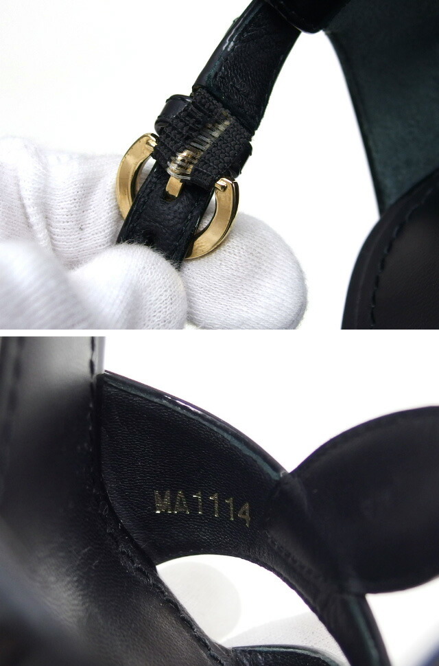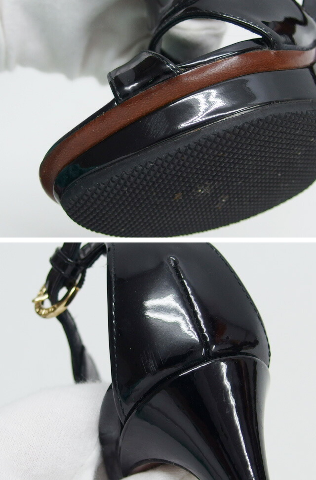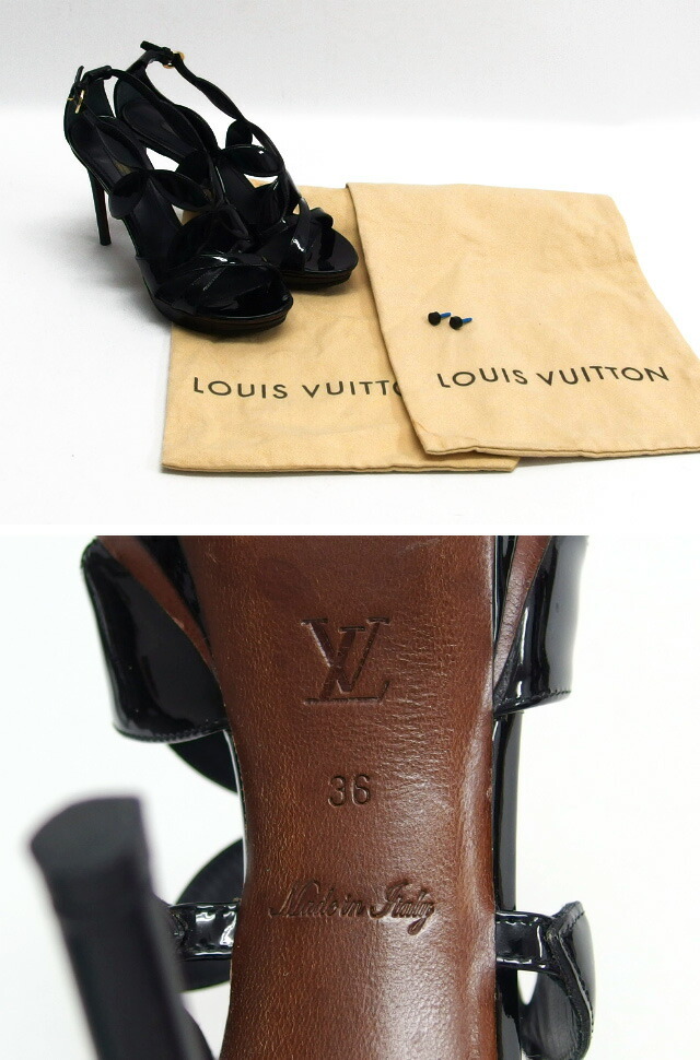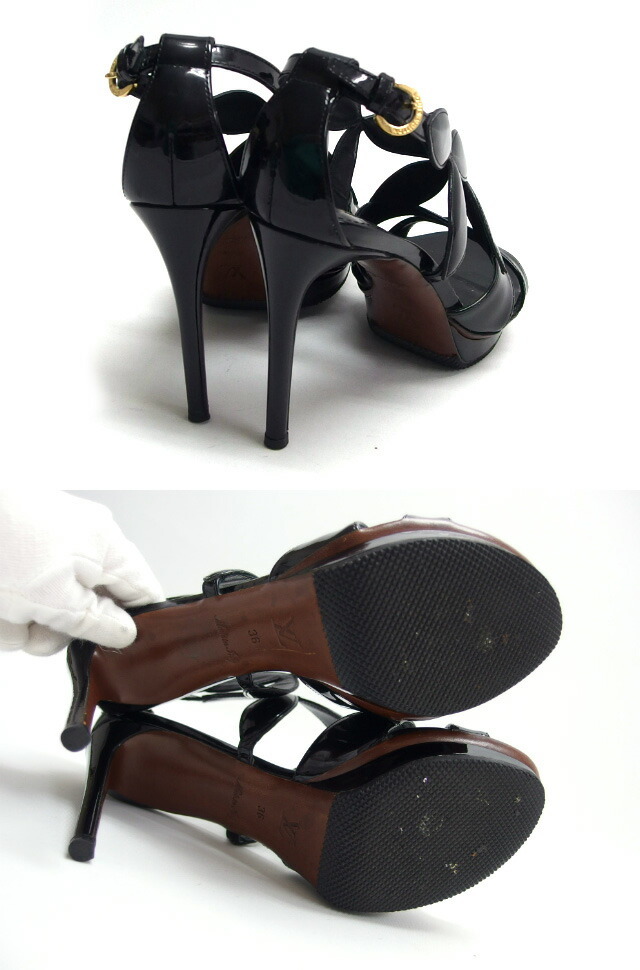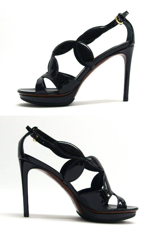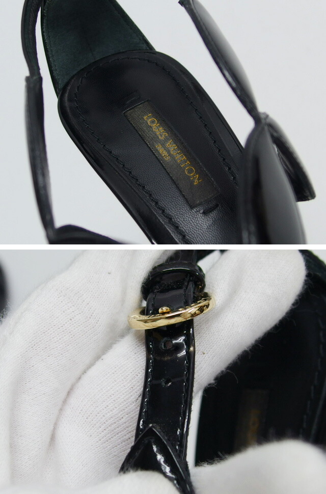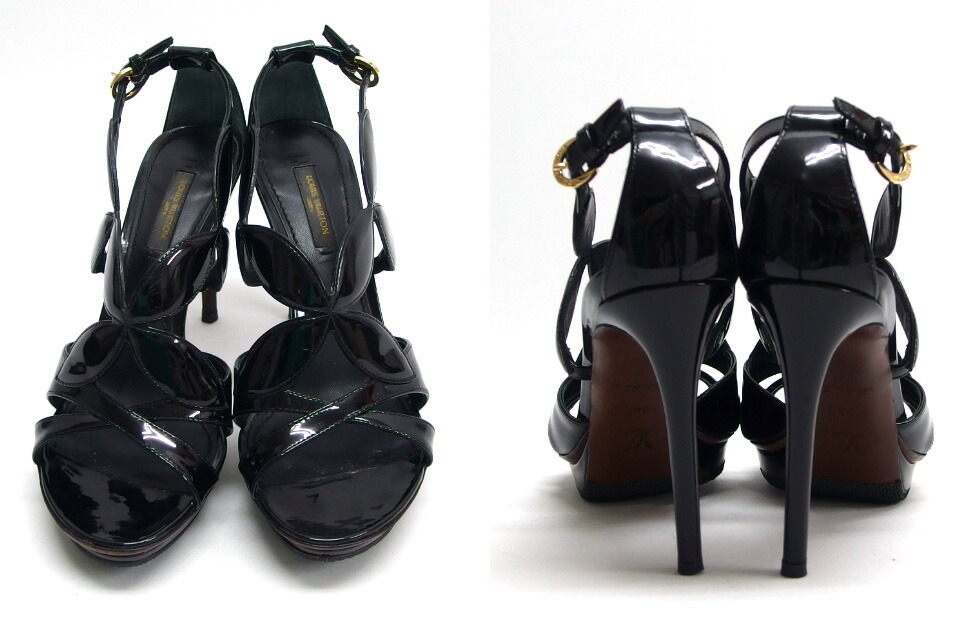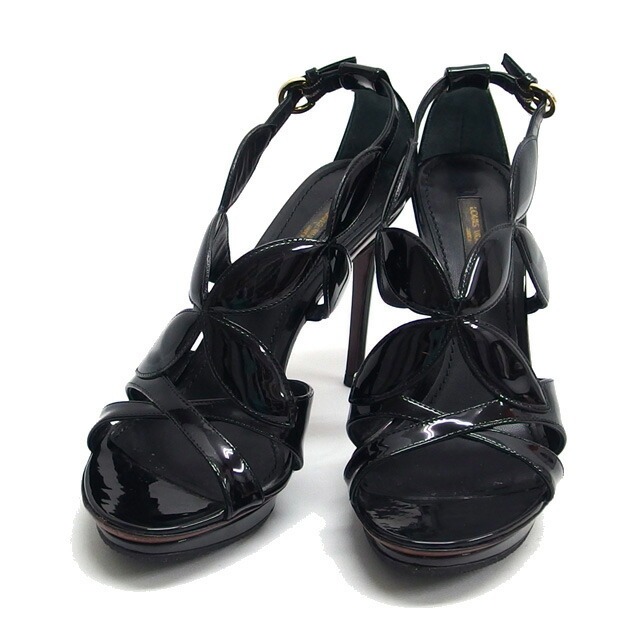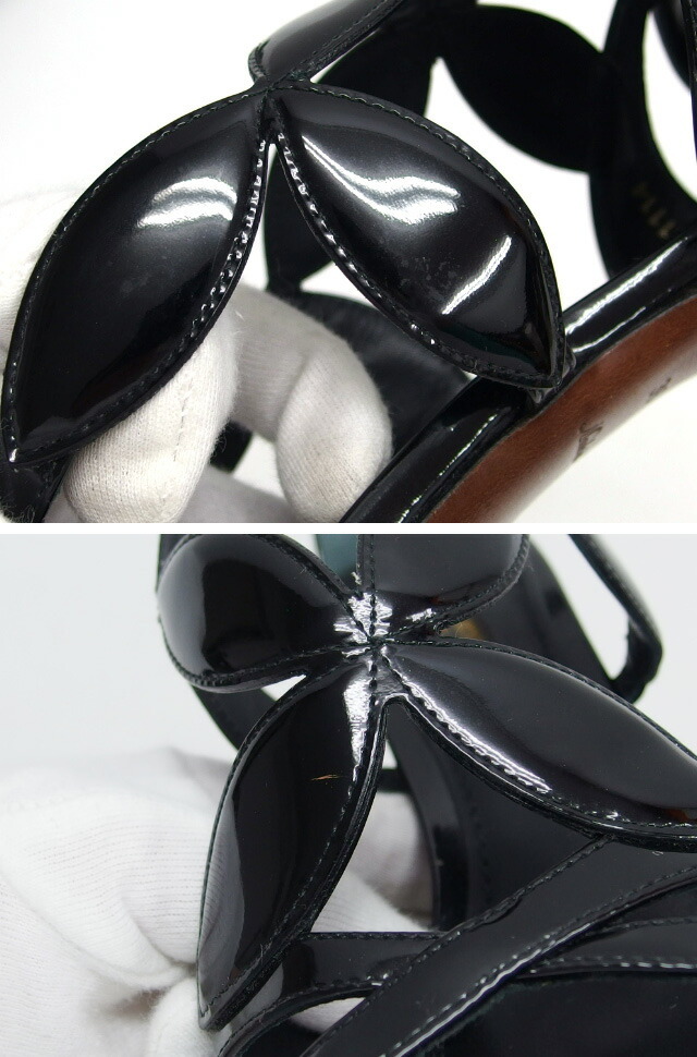 商品名 | モノグラム・フラワー パテント ピンヒール サンダル シューズ エナメルレザー ノワール(黒) サイズ36 約23cm 464951 花 レディース |