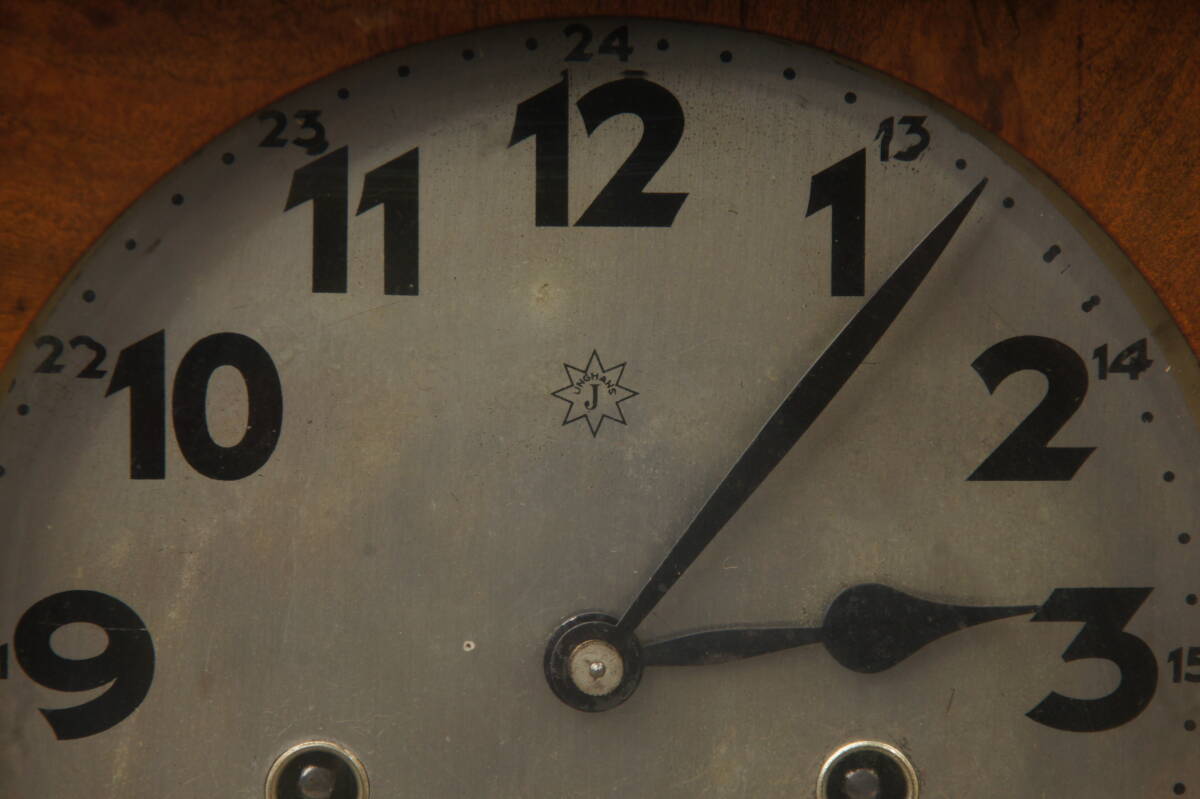古いユンハンス製の掛け時計。きれいな木目です。