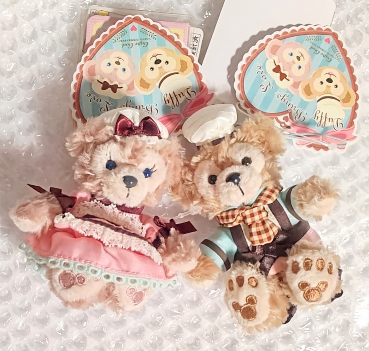 写真1枚目のスイートダッフィーで購入したダッフィーとシェリーメイのぬいぐるみストラップをセットでお譲りします。バラ売りでも金額は変わりません。