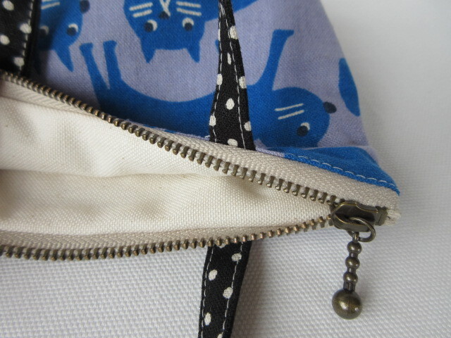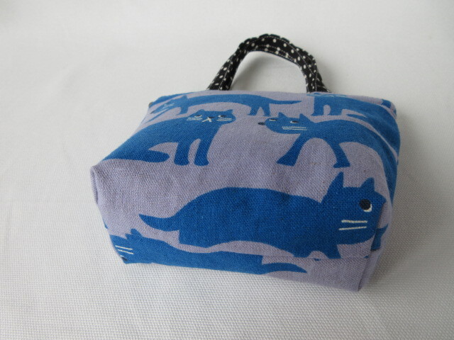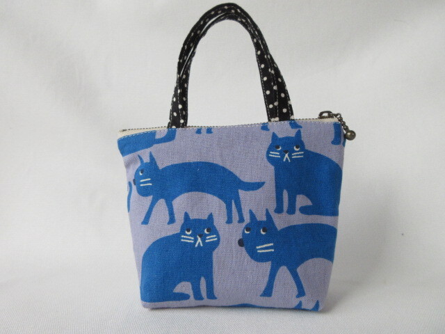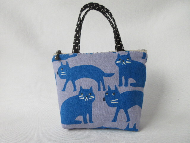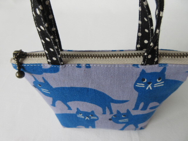 ミニポーチ・持ち手付き■猫・ブルー■ハンドメイド