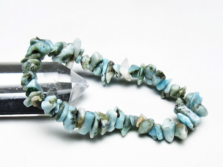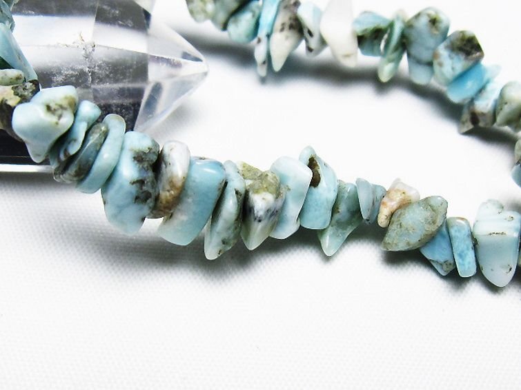 ■商品名: ラリマーブレスレット ■商品ID: T301-1054 ■商品重量:約 18.5g ■商品サイズ:内周約:163mm(±5mm) 【ラリマー(ブルーペクトライト)】 ラリマーは正式な鉱物名を「ブルーペクトライト」と呼びます。 カリブの海を思わせる美しい鮮やかな色合いと波のような模様が魅力の天然石で、産地であるドミニカ共和国のナショナル・ストーンにも認定されています。 ラリマーは三大ヒーリングストーンの一つに名を連ねるほど癒しの力が強く、怒りや闘争心といった感情を沈めて精神の安定をもたらすとされています。 愛と平和の象徴ともいわれており、他人に対しても寛容な心で接することができるようになるので愛のある良好な人間関係を築くことができるといわれています。 またカリスマ性やクリエイティブな能力を高める効果も期待され、有名人の愛用ストーンとしても知られています。 このほかにもラリマーは霊的な力がとても強いとされており、神秘的な体験や魂レベルでの成長、霊的コンタクトをもたらすといわれています。深いリラックス状態に導いてくれるので、癒しだけでなく瞑想の効果をより高めたい方にもおすすめです。 ⇒ ラリマーをもっと詳しく ◆ワンポイント情報 ラリマーはモース硬度4.5~5と低くく、直射日光や水分によっても褪色・劣化しやすいので美しい状態を保つために取り扱いには十分注意してください。 |
