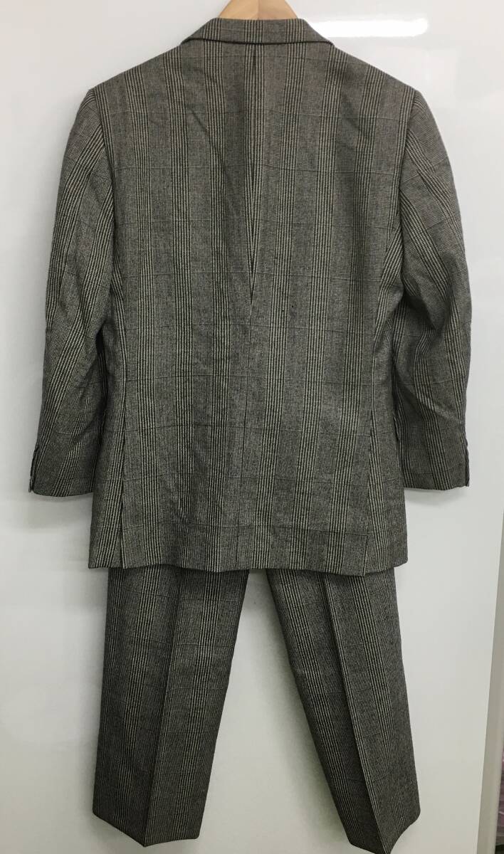 経年劣化によるにおいが見られます。 背中に穴あきが見られます。 上下ともに内側生地に変色・汚れ・シミ等のダメージが見られます。 名前の刺が入っています。 サイズ:ジャケット着丈約75㎝ 身幅約52㎝ 肩幅約44㎝ 袖丈約58㎝ スラックス ウエスト約38㎝ 股上約30㎝ 股下約78㎝ カラー:グレー系 |
