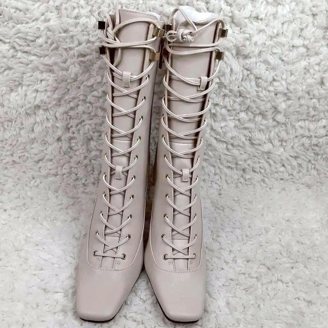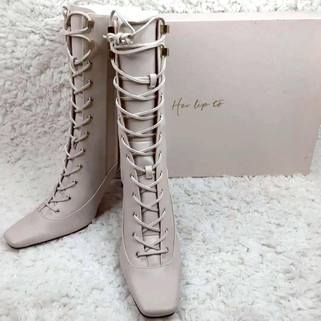 新品未使用箱付き 23㎝◎Her lip to ハーリップトゥ ロングブーツ ハイヒールブーツ バニラ 黄白色 サイドジップ 編み上げ 121441108 定価19,000円 AKB48 こじはる 小嶋陽菜