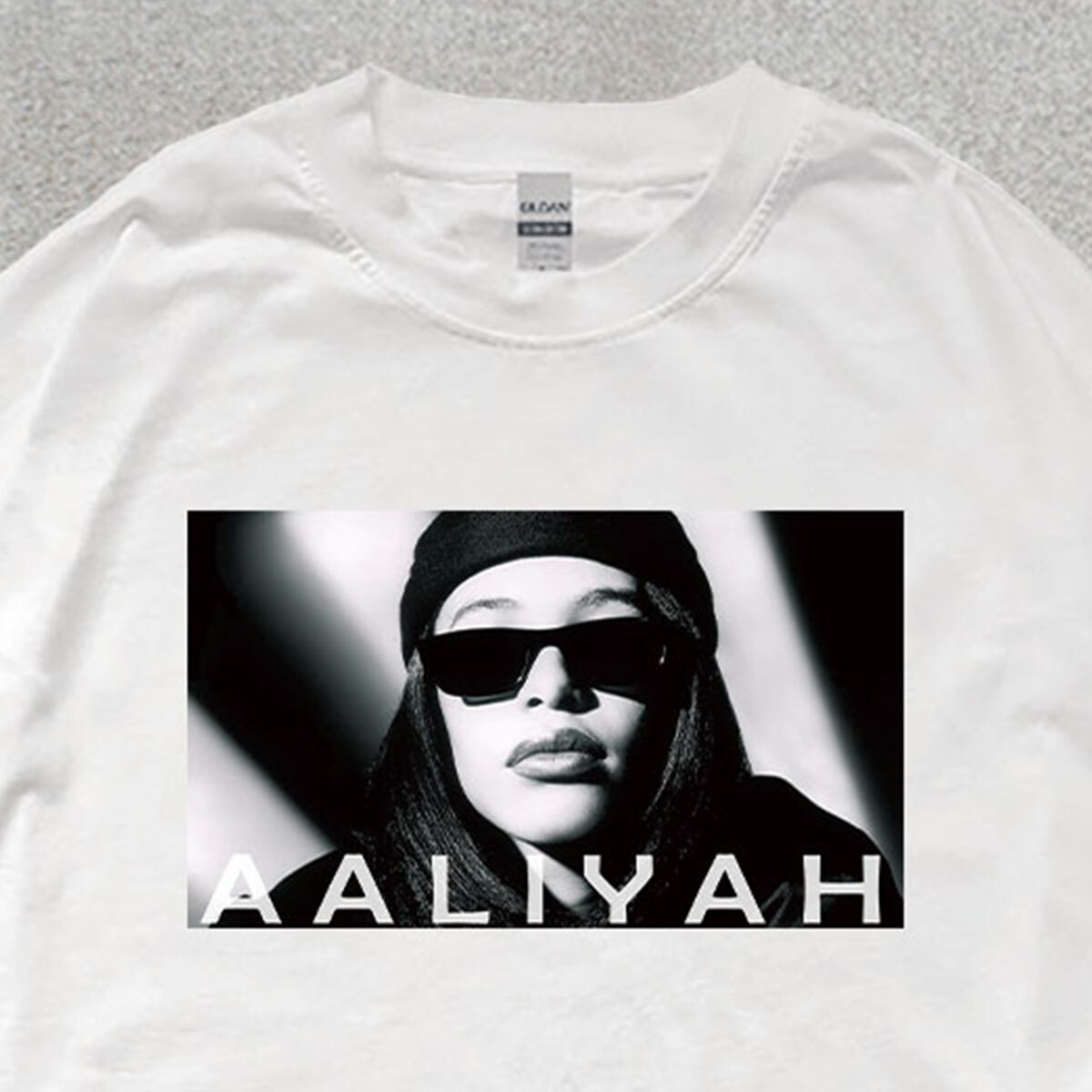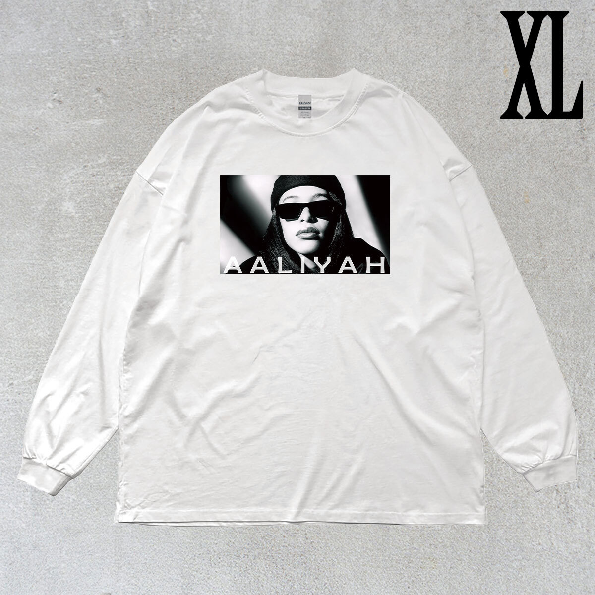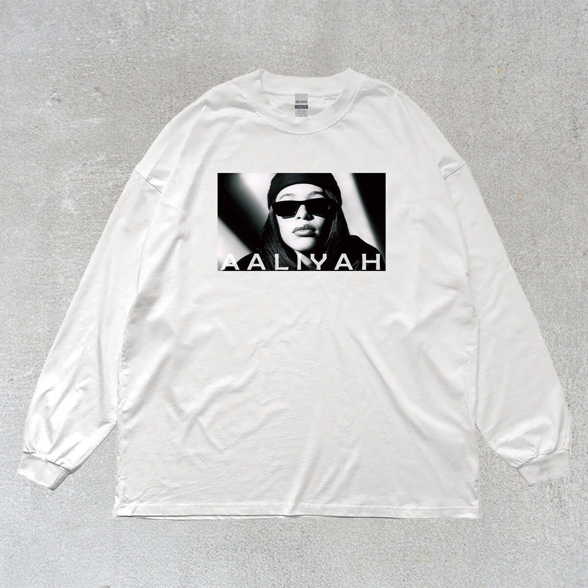 アリーヤ Aaliyah モノクロ フォトプリント リブ付き 長袖 Tシャツ ロンT キレイめ カジュアル 6.0oz コットン100% ユニセックス XL