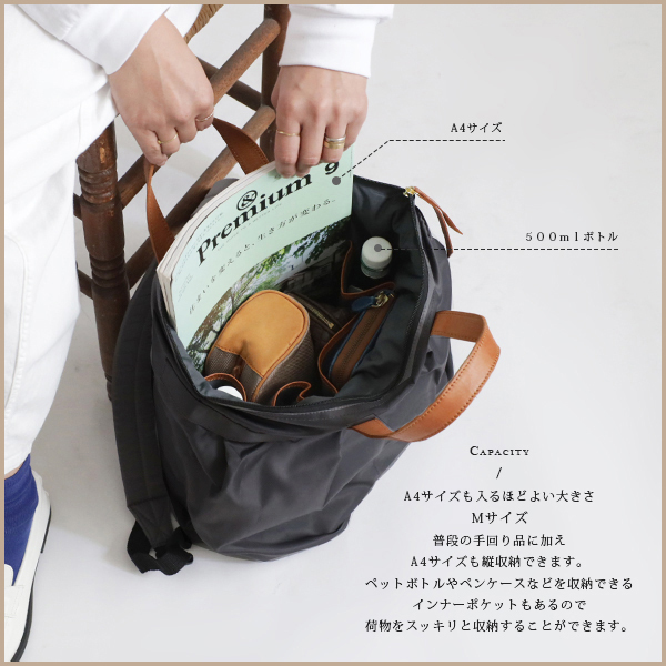 タンブラーやペットボトルの入る【縦長ポケット】が、