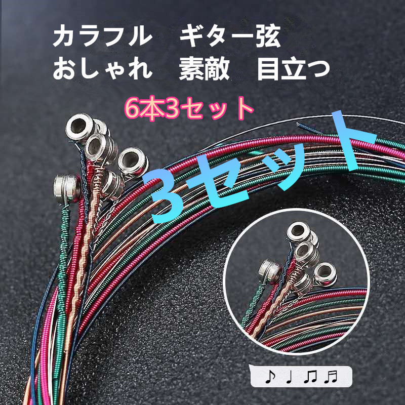 おしゃれ 目立つ カラフル ギター弦 アコギ弦6本3セット