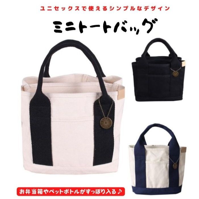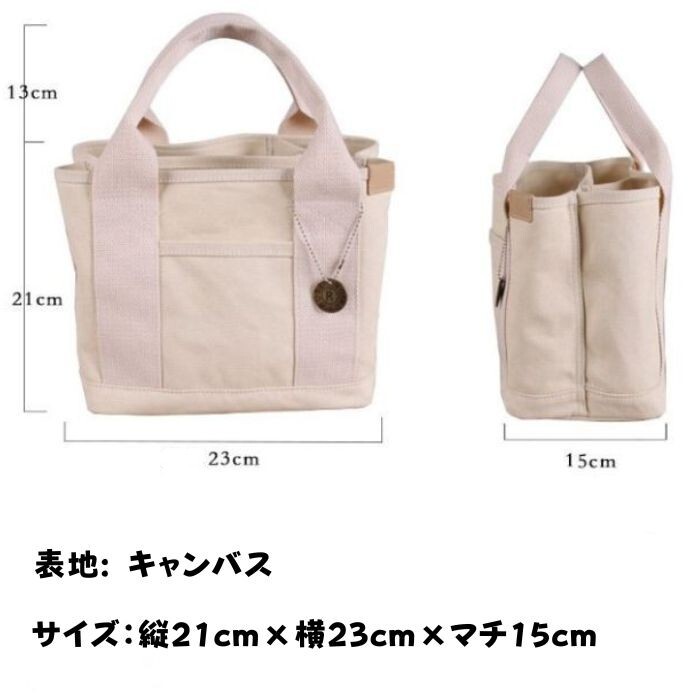 軽量 お散歩 お買い物 旅行 通勤 メンズ レディース 男女兼用 素材:キャンバス(帆布) サイズ :縦21cm×横23cm×マチ15cm 持ち手:35cm 重さ:約 320g ユニセックスで使える シンプルなデザインのミニトートバッグです。 3つの仕切りと2つのポケットでスッキリ収納が可能♪ 見た目以上の収納力と機能性があります。 外側にもう一つ、ポケットがあるので、 鍵、携帯など収納が便利です。 1. 一口价