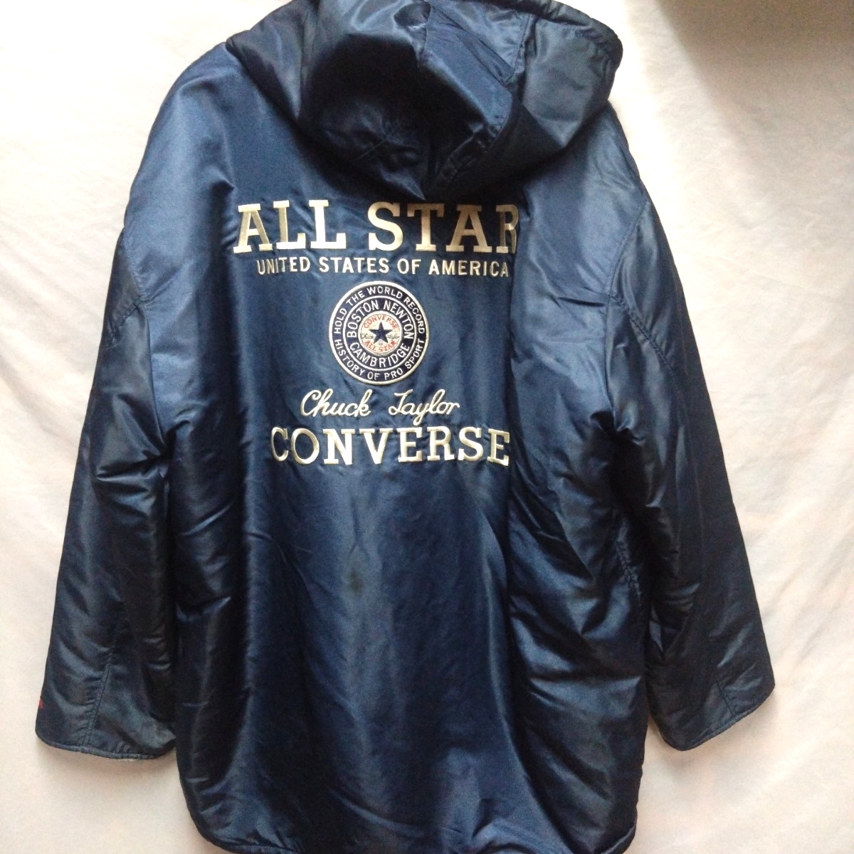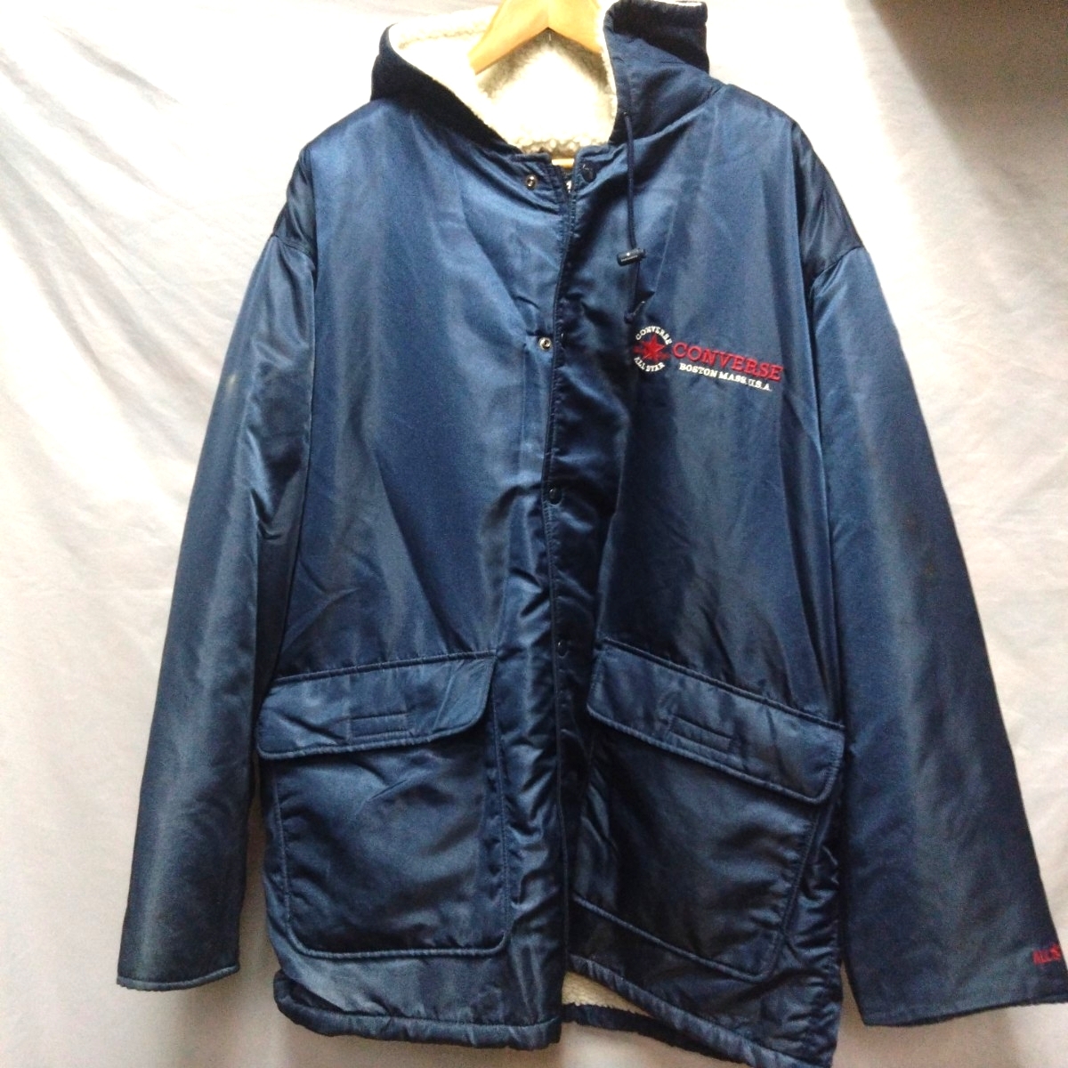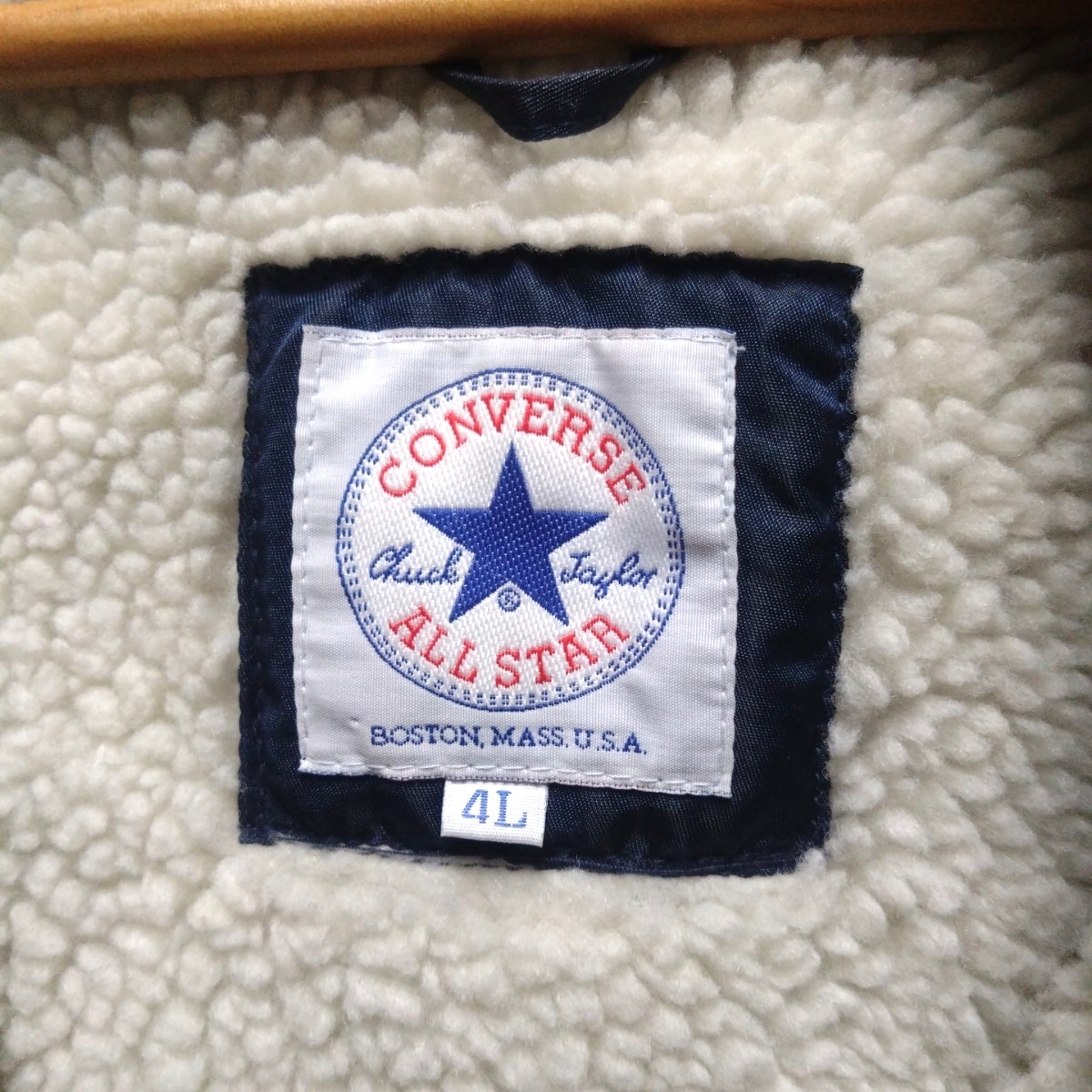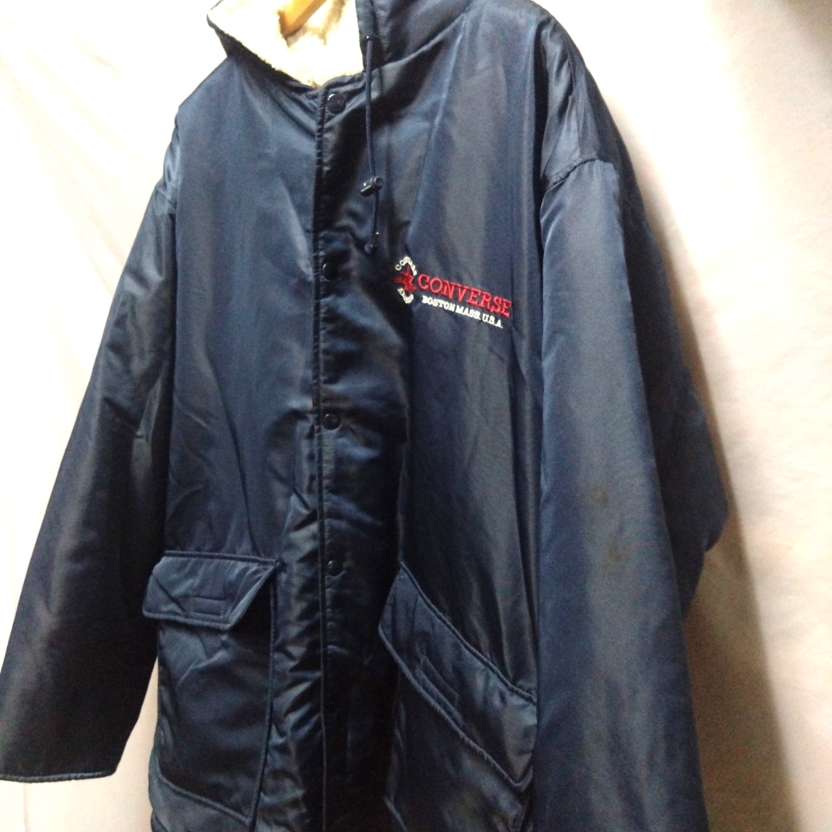 4Lサイズ CONVERSE ALL STAR BOSTON MASS.U.S.A ナイロンジャケット アウター ビッグロゴ ベンチコート 裏ボア ヤフオクにも多数出品