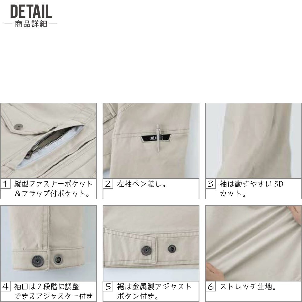 仕様:ストレッチ/ペン差し/袖3Dカット/袖口アジャスター付き/右縦型ファスナー付きポケット