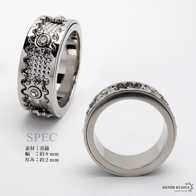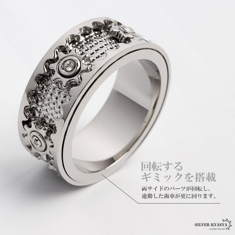 | 商品概要 | ■歯車×ギミックリング 歯車を等間隔にセットしたスチームパンクの雰囲気漂うギミックリング。幅広のフォルムとジルコニアの輝きが存在感を遺憾なく発揮します。上下のパーツが歯車が連動し回転する、遊び心を兼ね備えたアイテム。 |