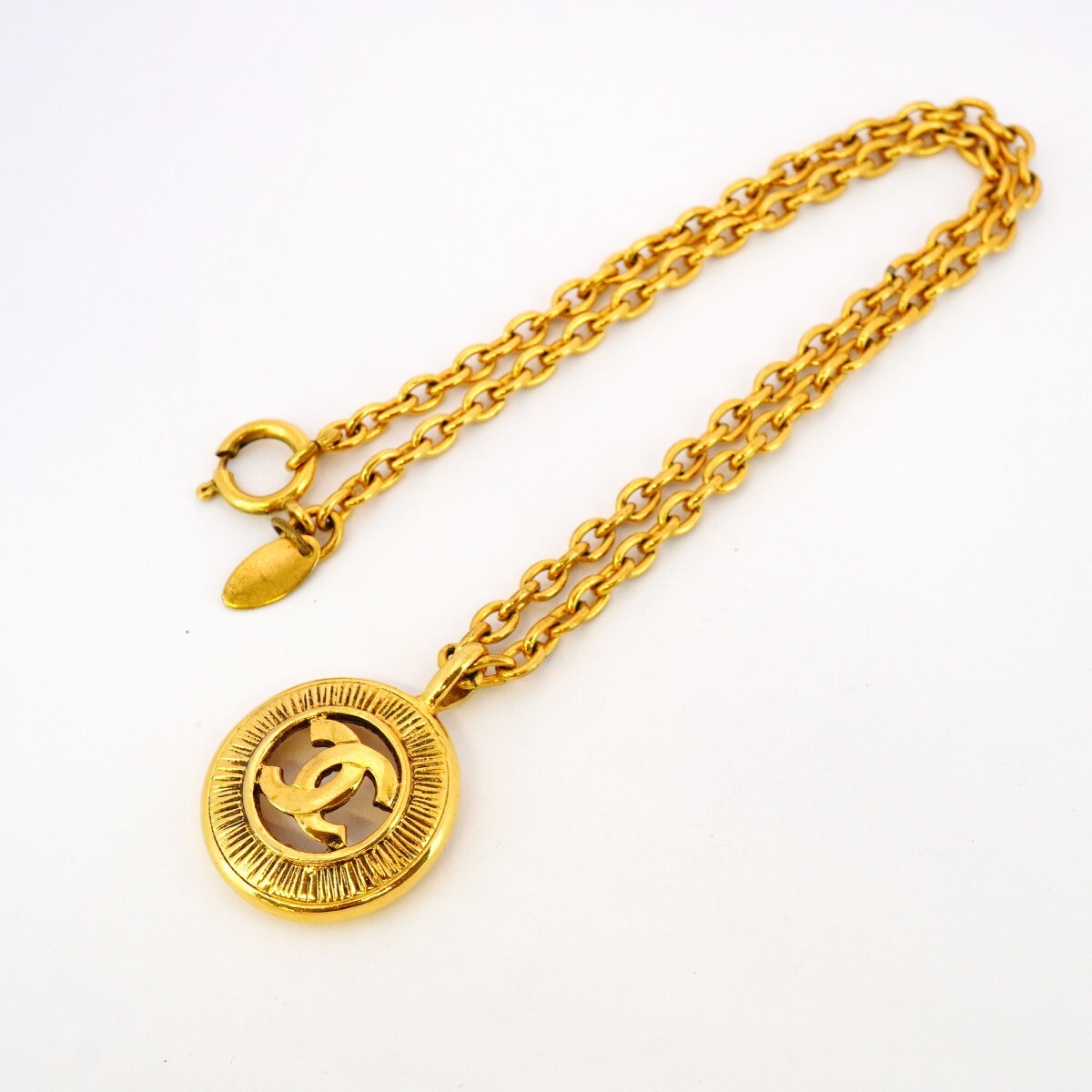 【5jib0809】シャネル ネックレス ヴィンテージ ココマーク 丸型 サークル GPメッキ ゴールド【中古】レディース