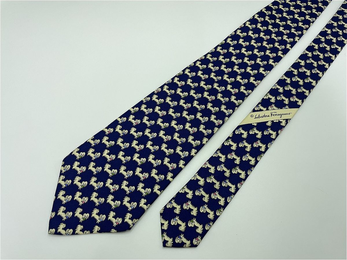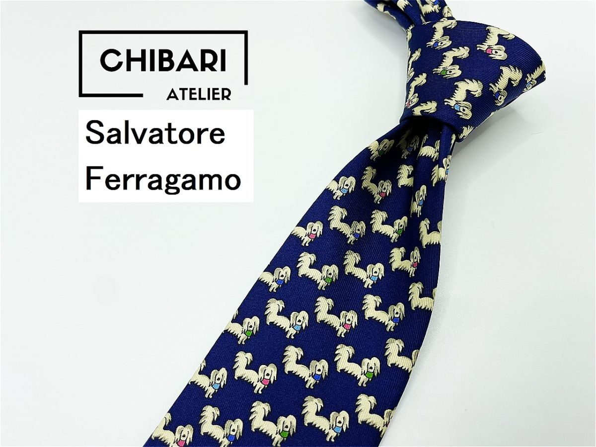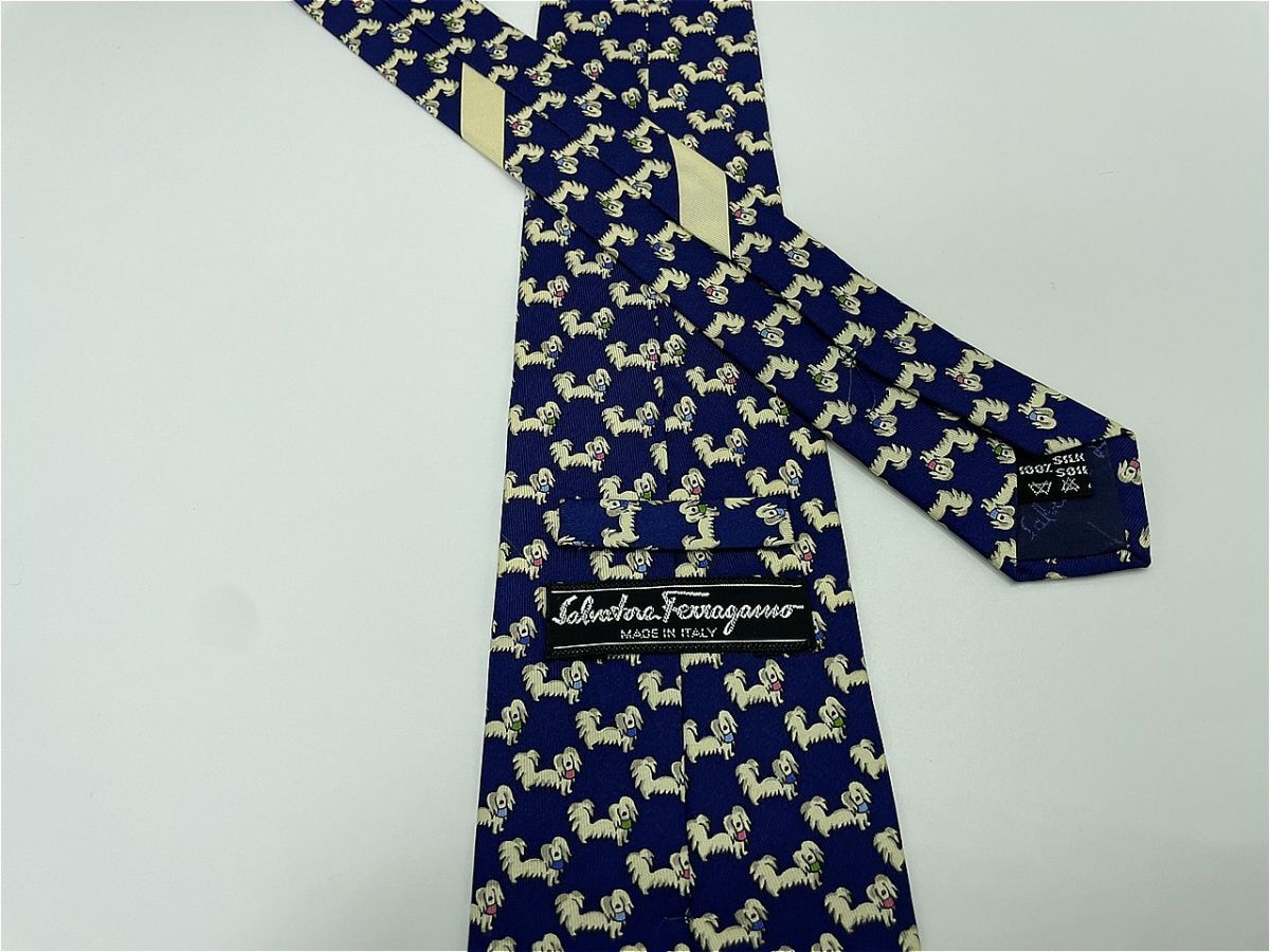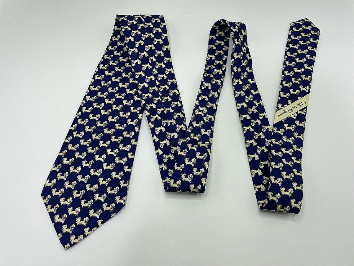 【新古品】Salvatore Ferragamo フェラガモ ワンちゃん柄 ネクタイ 3本以上 送料無料 メンズ ネイビー 0903114