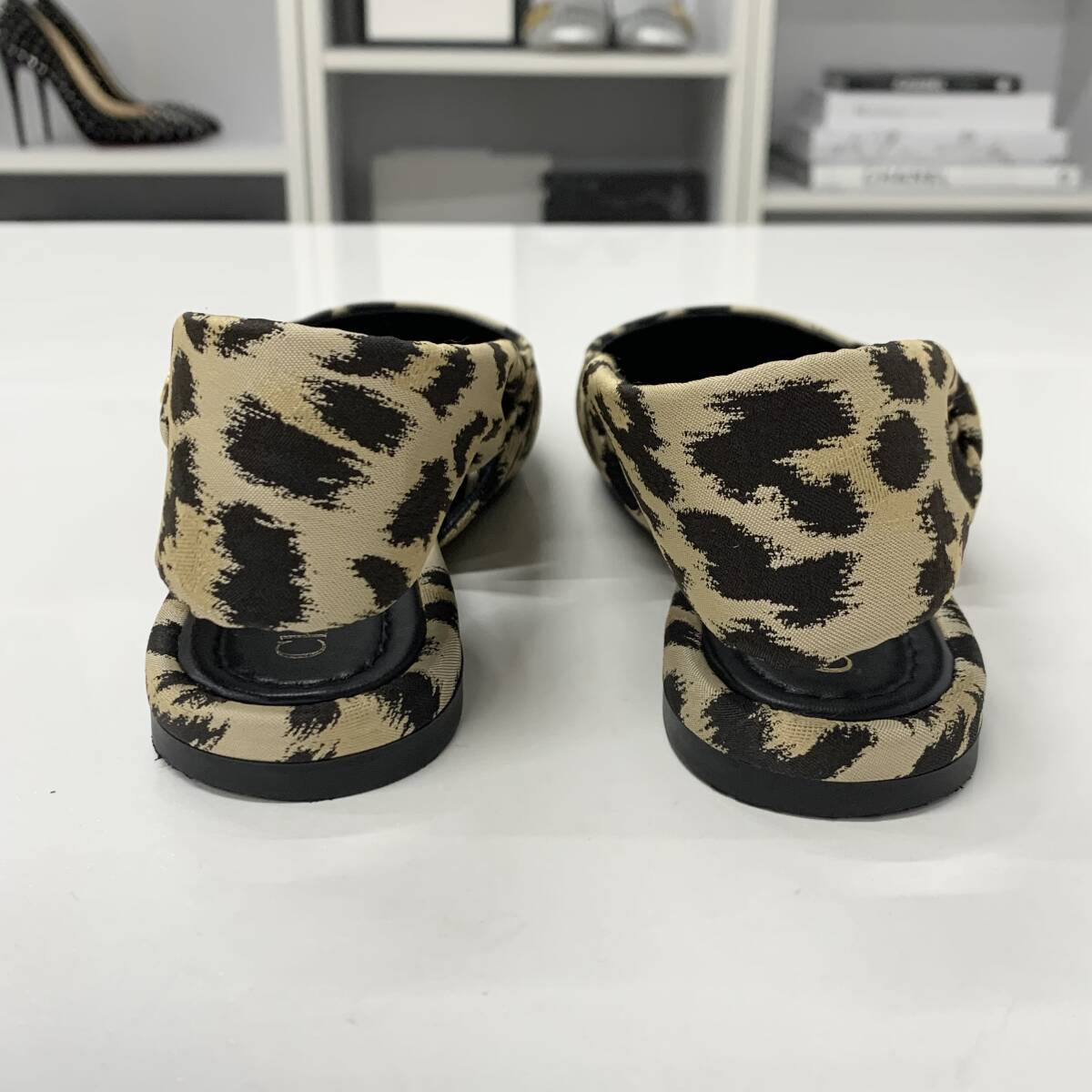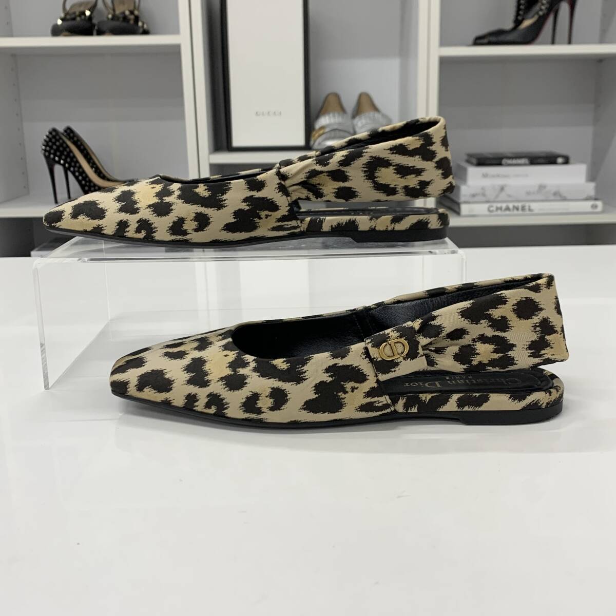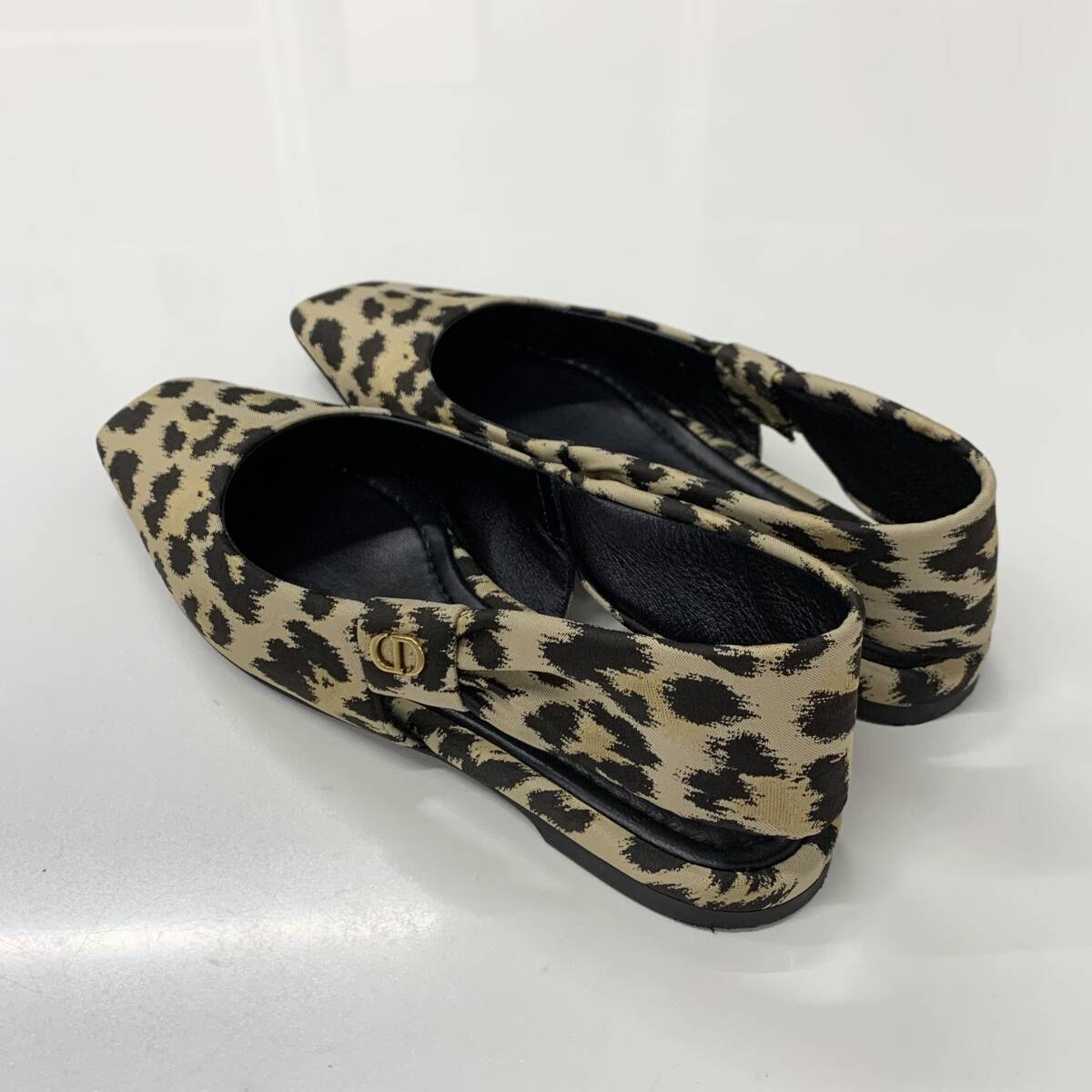 M13152 クリスチャンディオール MIZZA ロゴ ファブリック レオパード フラットシューズ ベージュ