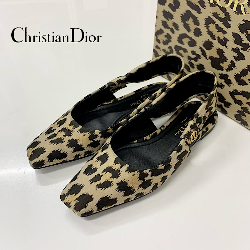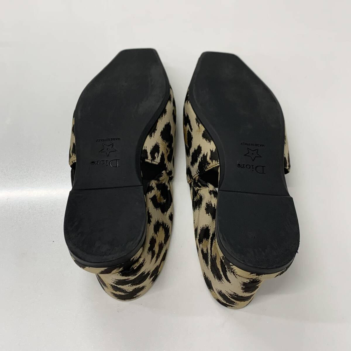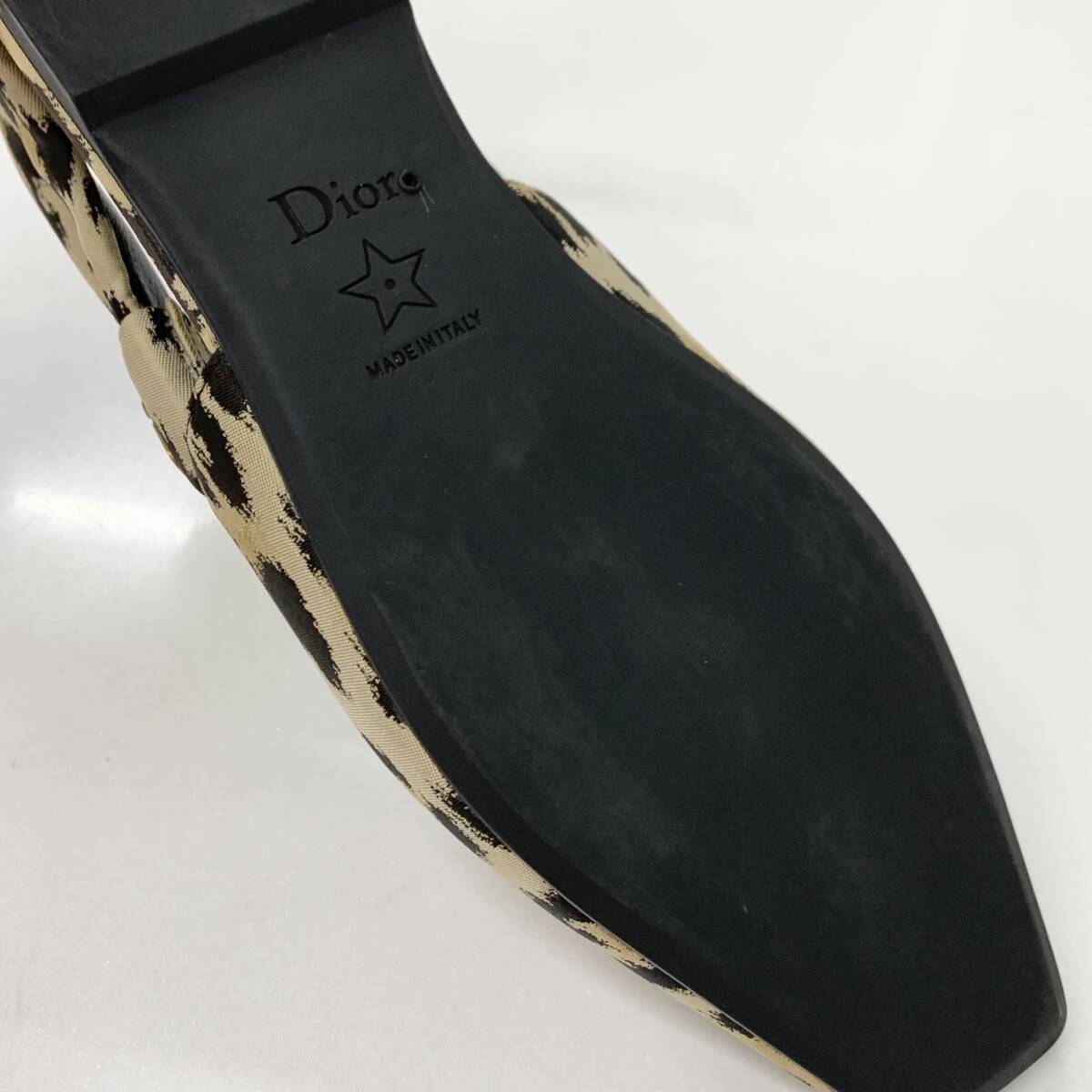 クリスチャンディオール MIZZA ロゴ ファブリック レオパード フラットシューズ ベージュ