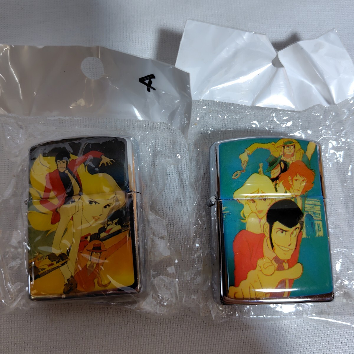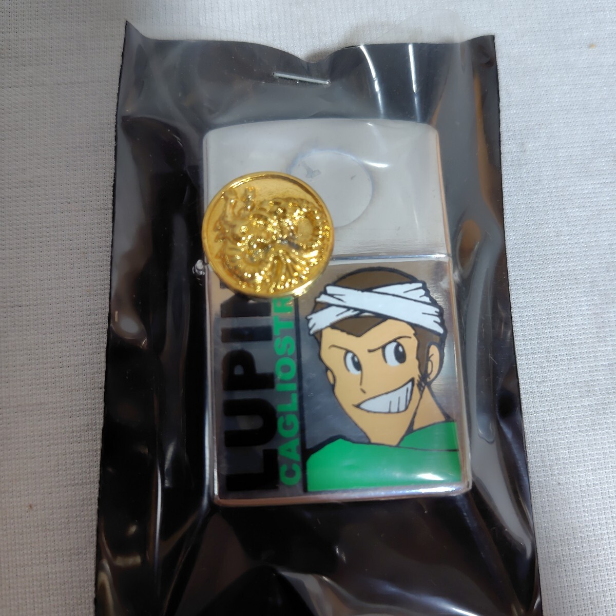ルパン三世のオイルライターです。zippoではありません。長期保管、未開封品ですが元々小傷があります。ルパンの金色の紋章みたいな物が剥がれています。接着剤で貼ってあるだけみたいです。一つ開封してみたのですが、火はでますのでオイルを入れれば使えると思いますが、着火石は交換したほうが良いと思います。メーカーは不明です。沖縄県、離島は船便になります。