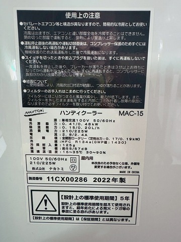 | *** B82★ナカトミ 中古美品 ハンディクーラー MAC-15 *** |