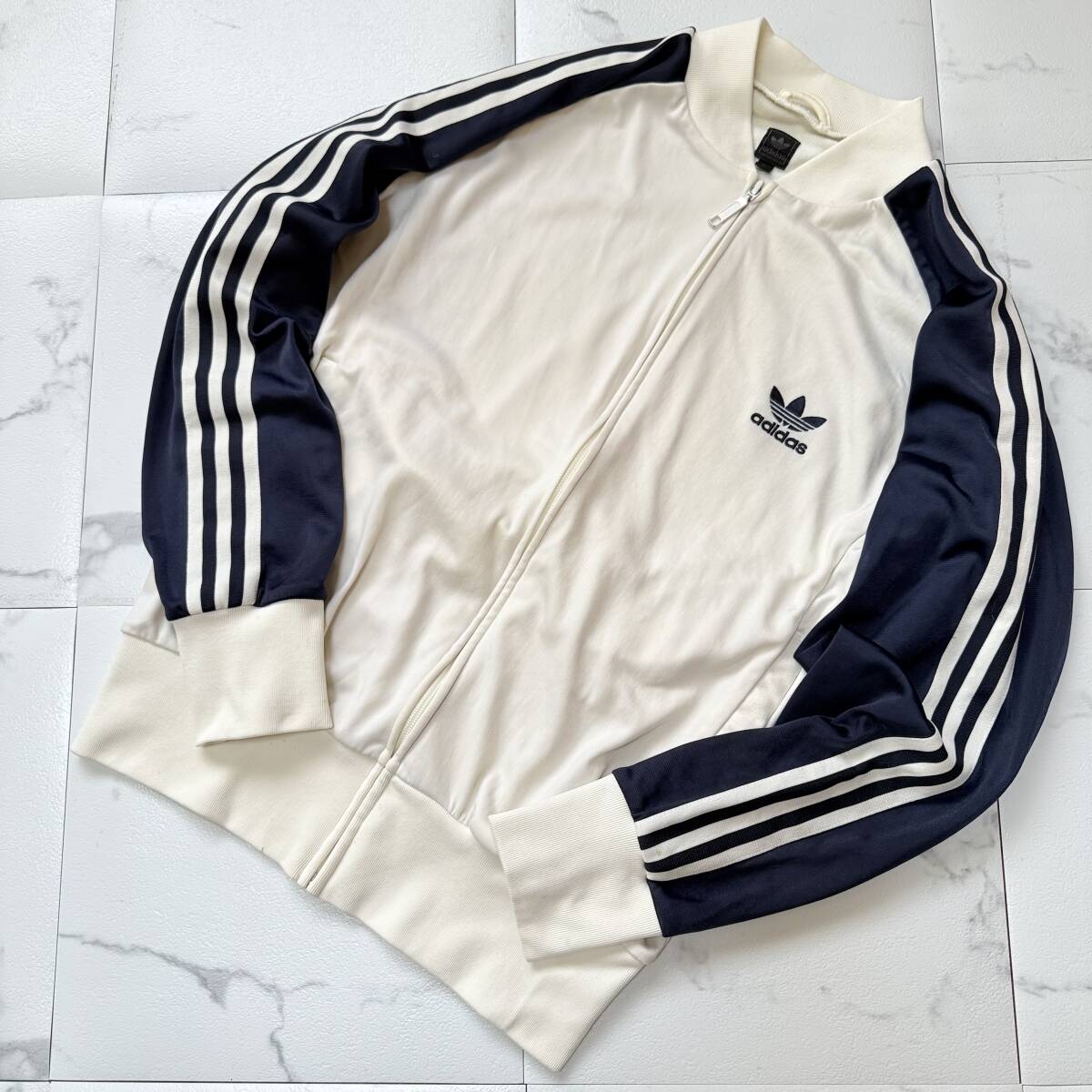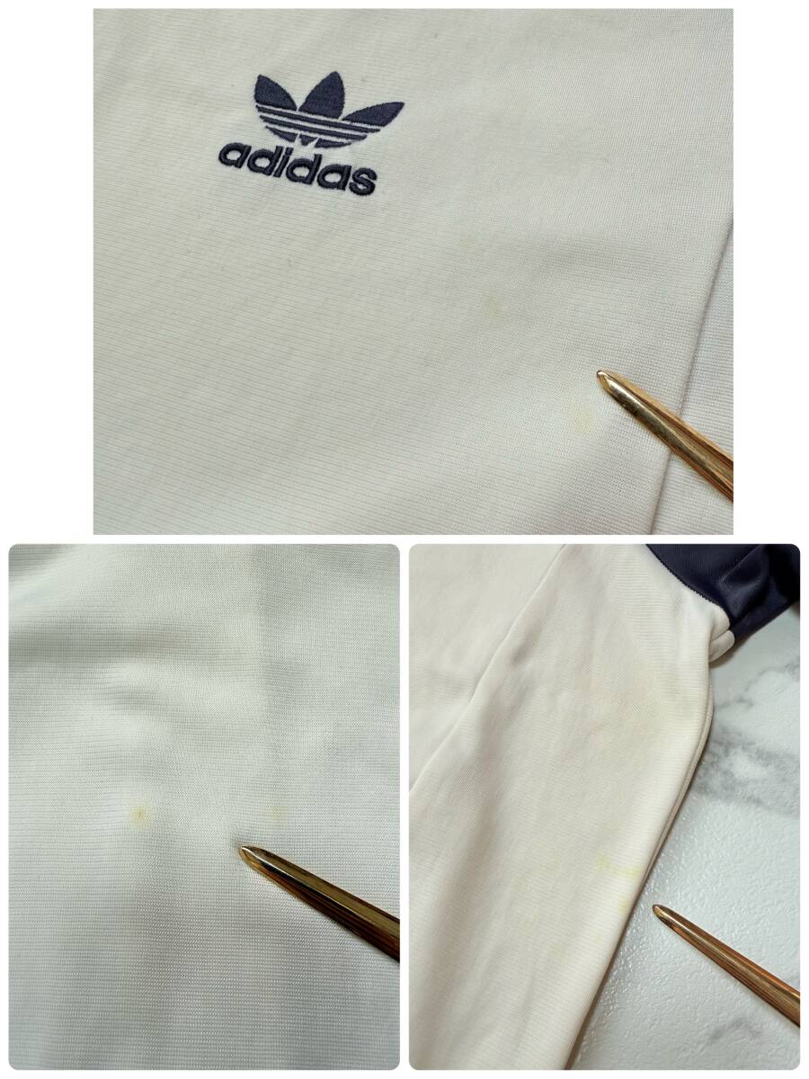 激レア 90s 00s ヴィンテージ アディダス ライン トラックジャケット ジャージ 万国旗 ブラック タグ トレフォイル 刺繍 濃紺白 Lサイズ 古着 になります。 ★サイズ L ★品質 ナイロン78% ポリエステル22% ★平置きサイズ 身幅64㎝ 着丈68㎝ 裄丈84㎝ 多少の誤差はご了承下さい。 ★状態 中古 表面、背面、ホワイト部分に薄い黄色っぽいシミ汚れが所々にございます。袖リブにもシミ汚れがございます。 着用に問題あるダメージはございませんが、ヴィンテージ古着感がございます為、画像でも状態をご確認の上、ご検討頂けましたら幸いです。 | ||||||||