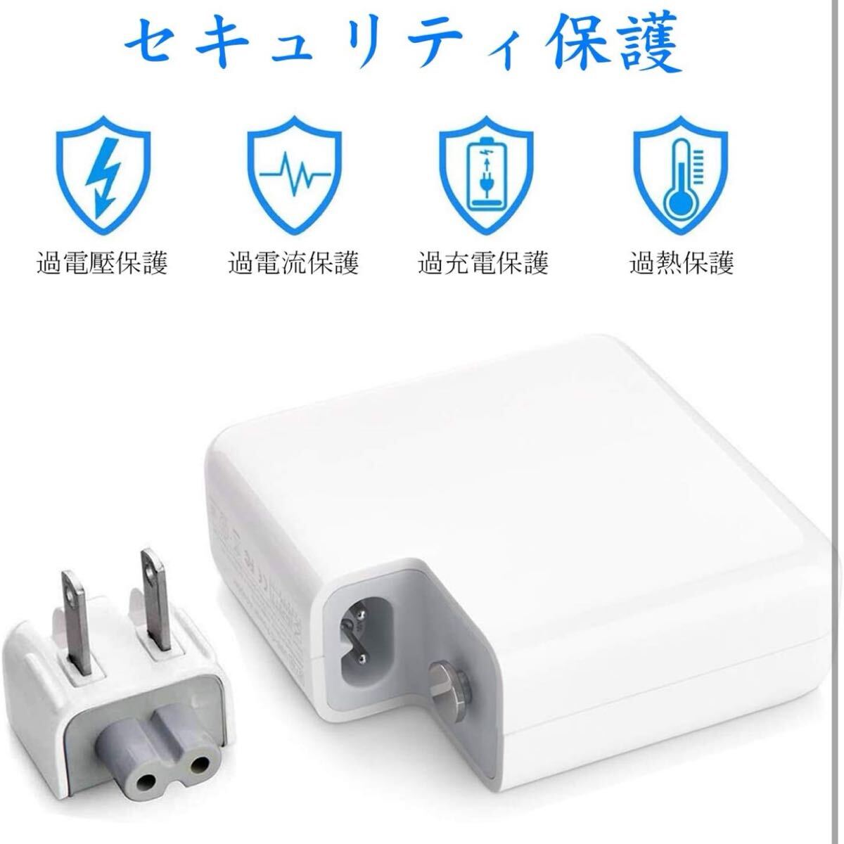 高品質: MacBook Air 充電器は最高品質の素材で作られており、ヒートシンクが内蔵されており、過電流、温度保護、短絡保護に対する複数のスマートな保護機能を備えています。