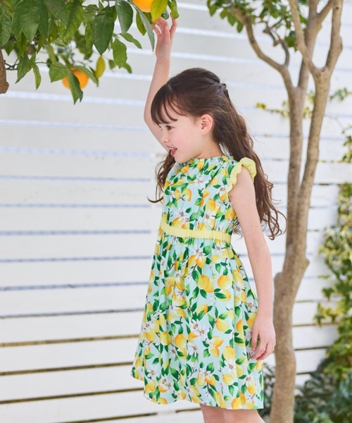 キーワード:ワンピース キッズ 子供服 ノースリーブ フレア 花柄 膝丈
