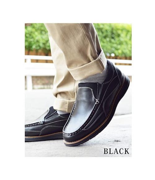 新品■26cm ウォーキングシューズ 軽量 メンズ スリッポン 防水 防滑 クッション きれいめカジュアル モカシン ステッチ 靴【エコ配送】