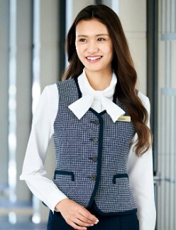 ベスト オーバーブラウス 制服 チェック 事務服 受付 仕事服 オフィスユニホーム リクルート スーツ