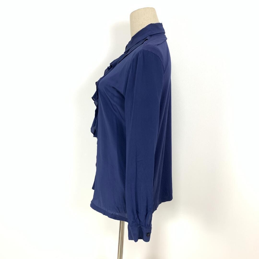 LA7542 マックスマーラ WEEKEND MaxMara ストレッチ有 ボタンシャツ レーヨン 長袖フリル ブラウス ブルー XS